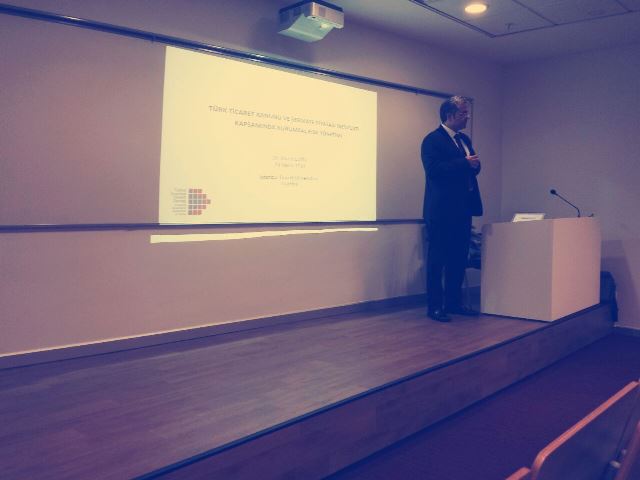 Sayın Dr. Murat Doğu’nun 24 Kasım 2014’de “Türk Ticaret Kanunu ve Sermaye Piyasası Mevzuatı Kapsamında Kurumsal Risk Yönetimi” adı altında yaptığı sunum İstanbul Ticaret Üniversitesi Sütlüce Yerleşkesinde düzenlendi. Sn. Doğu, Türk Ticaret Kanunu’nda ve Sermaye Piyasası Kurulu tarafından yayınlanmış Kurumsal yönetim İlkelerinde risk yönetimi, iç kontrol, bağımsız denetim ve iç denetim konularını karşılaştırmalı olarak inceleyip, Yönetim Kurulu üyelerinin sorumlulukları konusunda bilgi verdi.