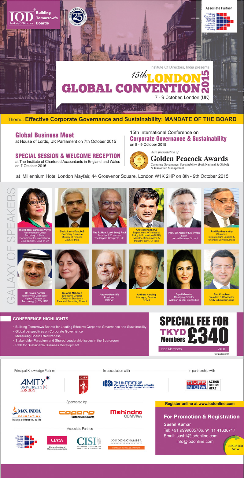 TKYD olarak 15. yılında medya işbirliği gerçekleştirdiğimiz 15. Londra Uluslararası Kongresi, Institute of Directors, Hindistan tarafından gerçekleştirilmektedir.