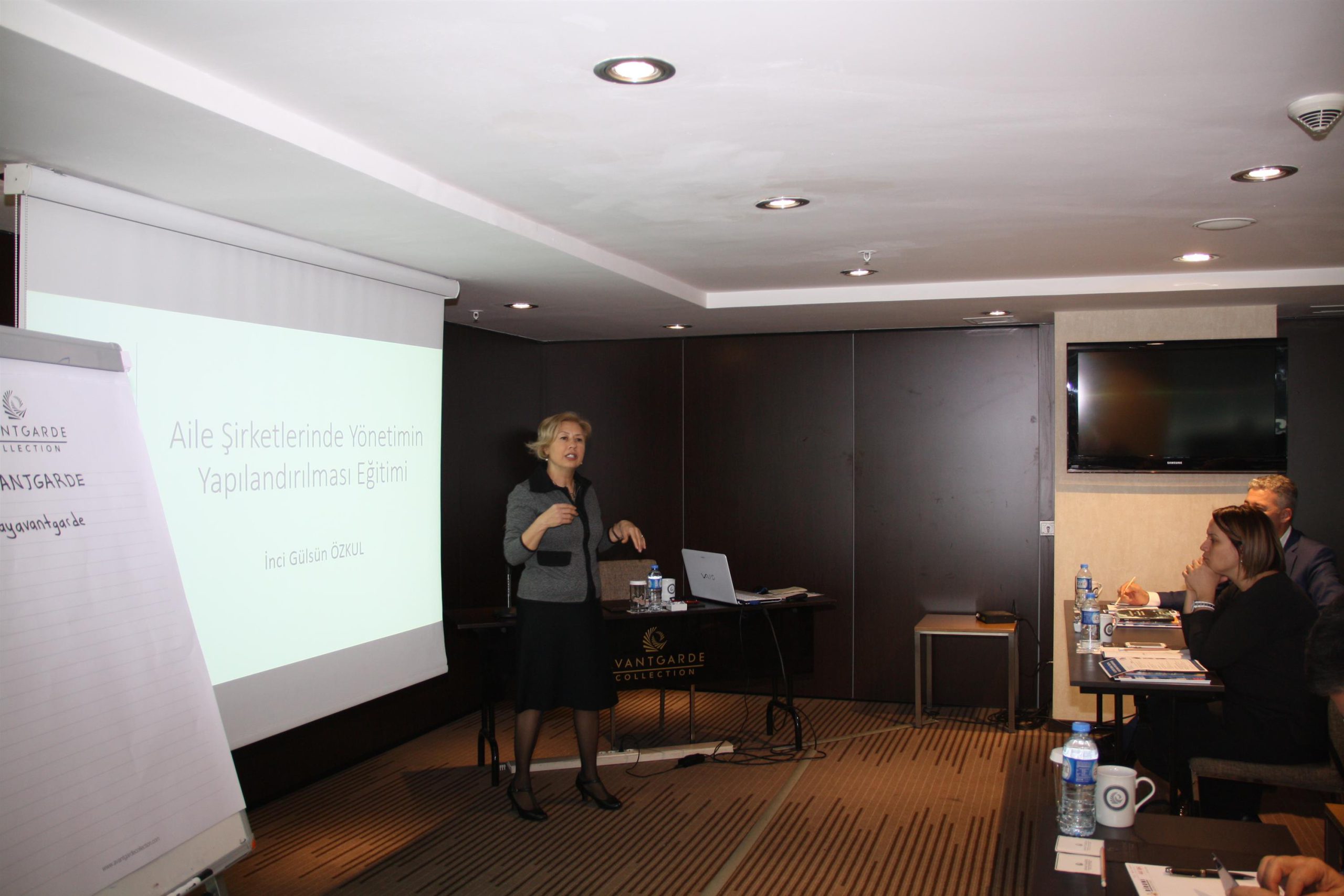 Aile Şirketlerinde Yönetim Kadrosunun Yapılandırılması Eğitimi 30 Mart 2017 tarihinde Avantgarde Hotel Levent adresinde düzenlendi. Aile şirketlerinde profesyonel yöneticilerin rolü, yedekleme planlarının oluşturulması, nesillerin entegrasyonu, profesyonellerin şirket içindeki adaptasyonu, yapılandırma araçları konularında Avea Executive Kurucu Ortağı İnci Özkul katılımcıları bilgilendirdi. Programın son bölümü deneyimlerin paylaşıldığı söyleşi formatında düzenlendi. Marmara Şirketler Grubu Yönetim Kurulu Üyesi Aydın Öğücü, İnoksan A.Ş. Genel Müdürü Esra Altay Batkın, Hisar Çatal Kaşık A.Ş. Stratejik Planlama Direktörü, İcra Kurulu Üyesi Aslı Erdoğan aile şirketlerinde üst düzey yönetici kadrosunun yapılandırılması konusundaki deneyimlerini katılımcılar ile paylaştılar.