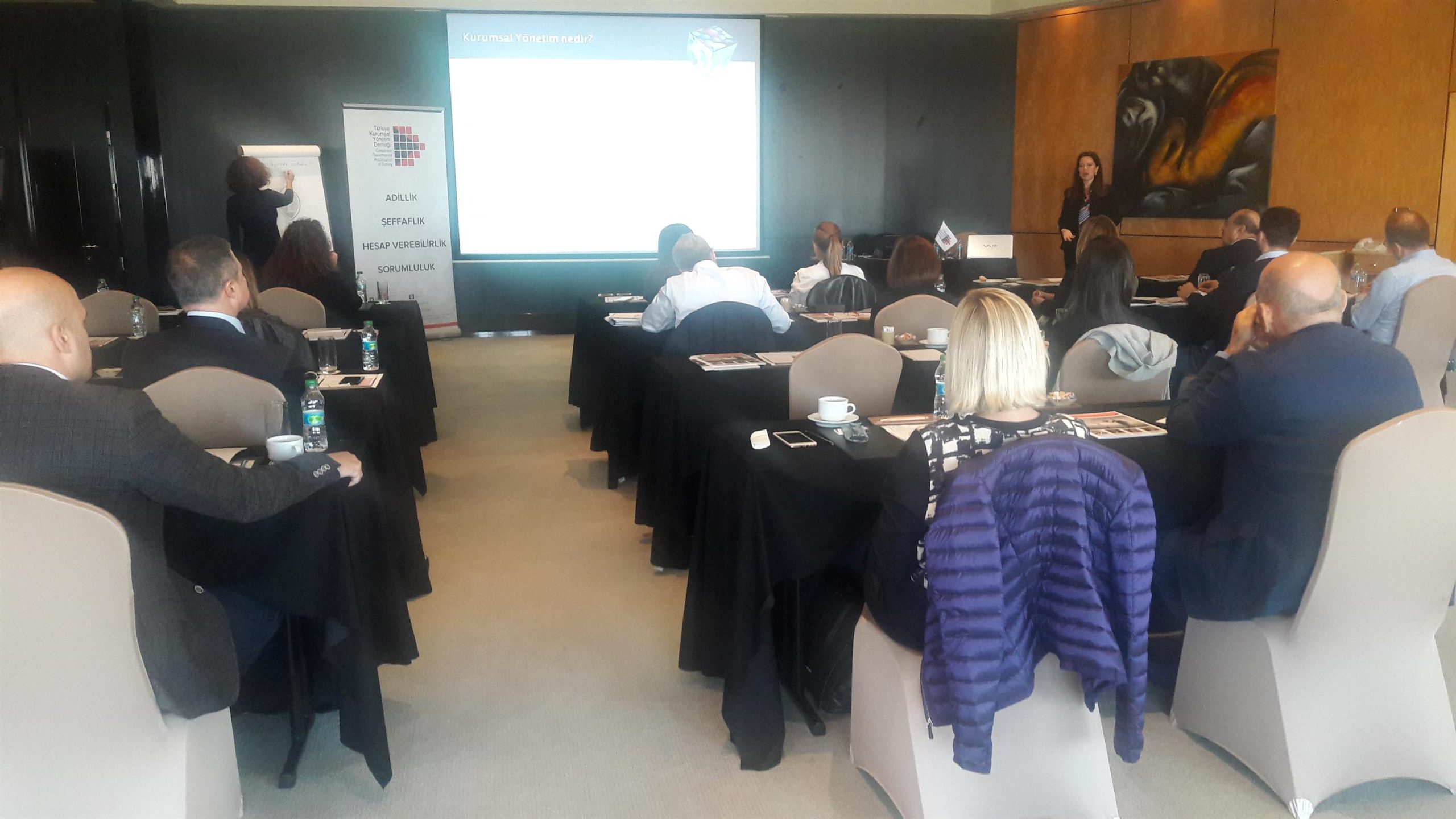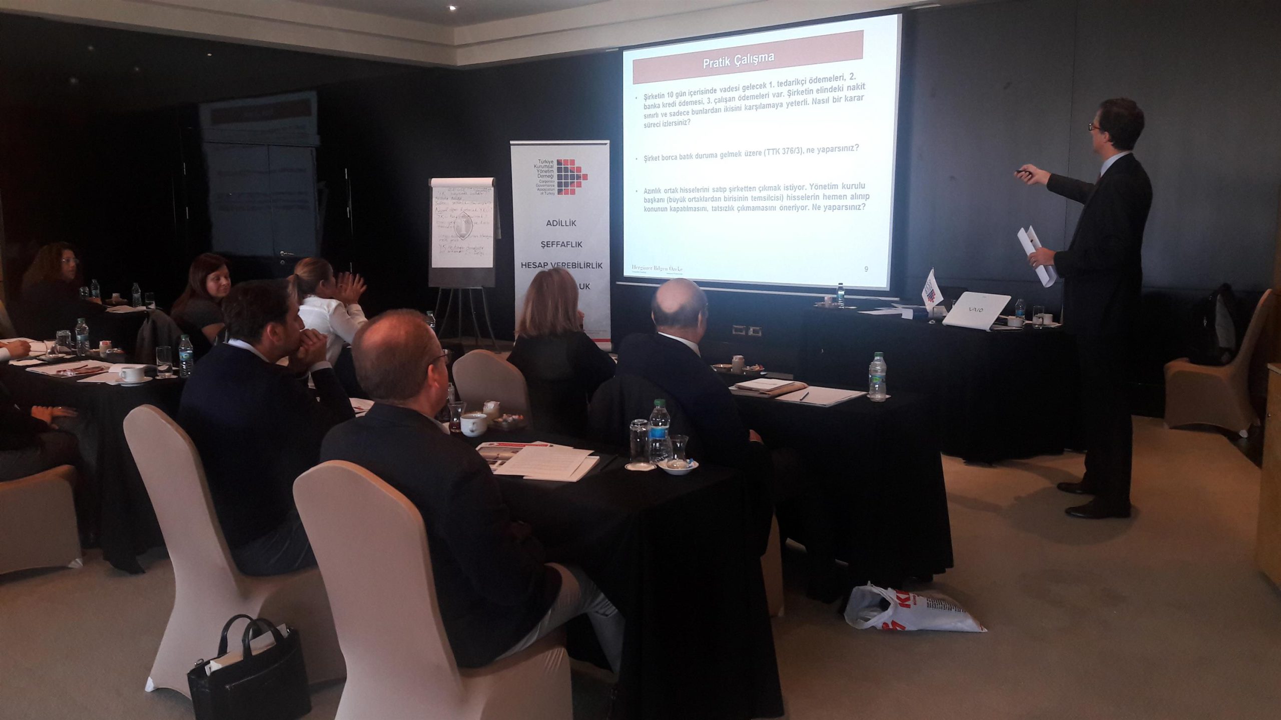 Bağımsız Yönetim Kurulu Üyelerine Özel Yönetim Kurulu Üyeliği İhtisas Programı 27 Ekim 2017 tarihinde InterContinental Otel’de düzenlendi. TKYD Yönetim Kurulu Başkanı Ali Pandır Yönetim Kurulu Yapısı ve Bağımsız Yönetim Kurulu Üyelerinin Yapısı konusunda katılımcılara bilgi aktarıp, farklı şirketlerdeki yönetim kurulu üyeliği tecrübeleri ile deneyim paylaşımında bulundu.