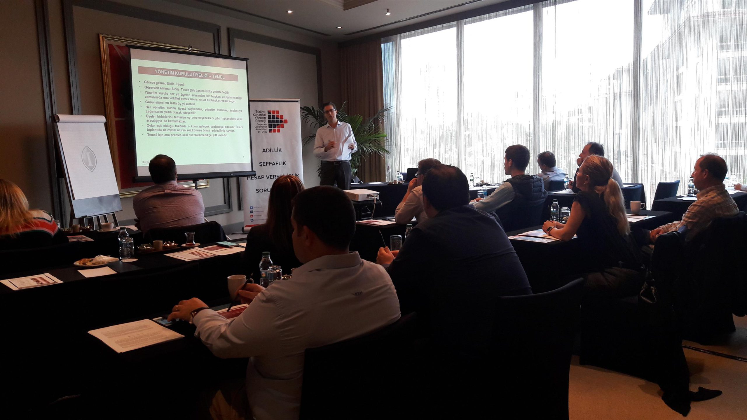 TKYD’nin Yönetim Kurulu Üyeliği İhtisas Programı 25-26 Mayıs 2018 tarihlerinde InterContinental Taksim Otel’de düzenlendi. Programda; yönetim kurulunun yapısı ve yönetim kurulu üyelerinin konumu, yönetim kurulu seçim kriteleri-oryantasyon ve yönetim kurulu üyelerine sağlanan ücret ve yan haklar, doğru yönetim modelleri ve takım olma bilinci, yönetim kurulunda şirket stratejisinin oluşturulması ve benimsenmesi, yönetim kurulu üyelerinin hukuki görev ve sorumlulukları, risk yönetimi konuları kapsamlı olarak ele alındı.