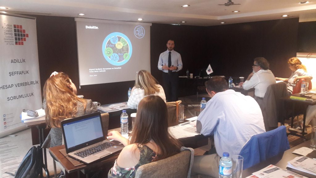 Kişisel Verilerin Korunması ve Kurumsal Yönetim Eğitimi 23 Mayıs 2018 tarihinde Avantgarde Otel’de düzenlendi. Eğitimin konuşmacıları; Hergüner Bilgen Özeke Avukatlık Ortaklığından Kıdemli Avukat Melike Gençalp ve Deloitte Türkiye Kıdemli Müdürü Cihan Vehbi Salihoğlu oldu. Av. Melike Gençalp; Kişisel Verilerin Korunması Kanunu’na Uyumun Hukuki Boyutu ve Sürekliliğinin Sağlanması konusunu katılımcılara aktarırken, Cihan Vehbi Salihoğlu Kişisel Verilerin Korunması Kanunu’na göre denetim konusunda katılımcıları bilgilendirdi.