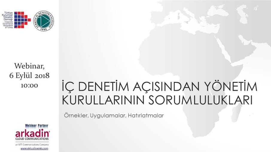 İç Denetim Açısından Yönetim Kurullarının Sorumlulukları webinarı TİDE işbirliğinde ve Arkadin sponsorluğunda 6 Eylül 2018 tarihinde yüksek bir katılım ile düzenlendi. Webinarımıza katılan tüm üyelerimize ve paydaşlarımıza teşekkür ederiz.