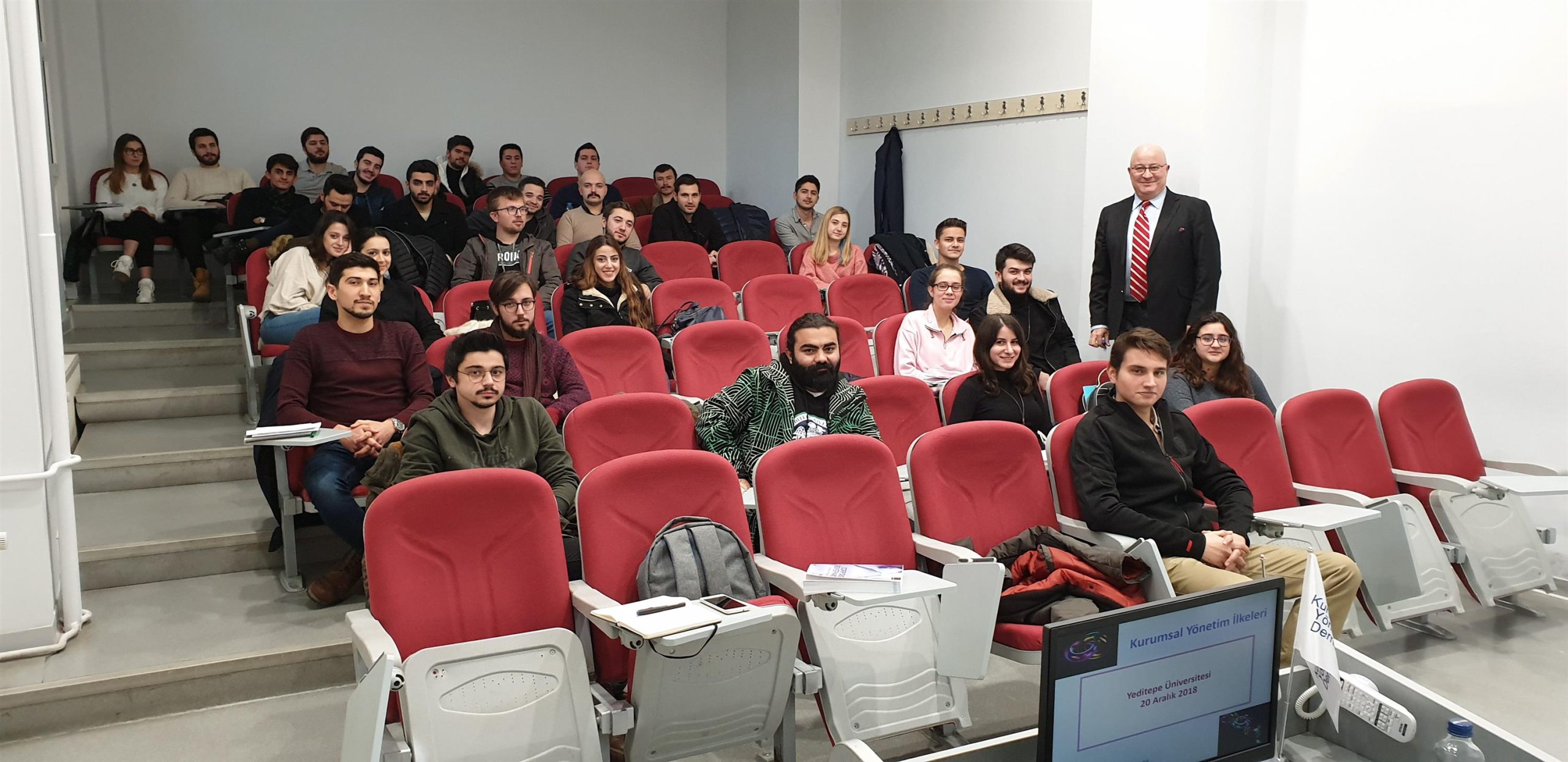 TKYD olarak üniversitelere konuk olmaya ve kurumsal yönetimi anlatmaya devam ediyoruz. TKYD Yönetim Kurulu Üyesi Mustafa Doğrusoy, 20 Aralık 2018 tarihinde Yeditepe Üniversitesi İktisadi ve İdari Bilimler Fakültesi İşletme Bölümü’nde “Corporate Governance” dersinde “Kurumsal Yönetimin Dünyada Gelişimi ve Türkiye’de Kurumsal Yönetimin Geldiği Nokta ve Uygulamalar”ı anlattı.