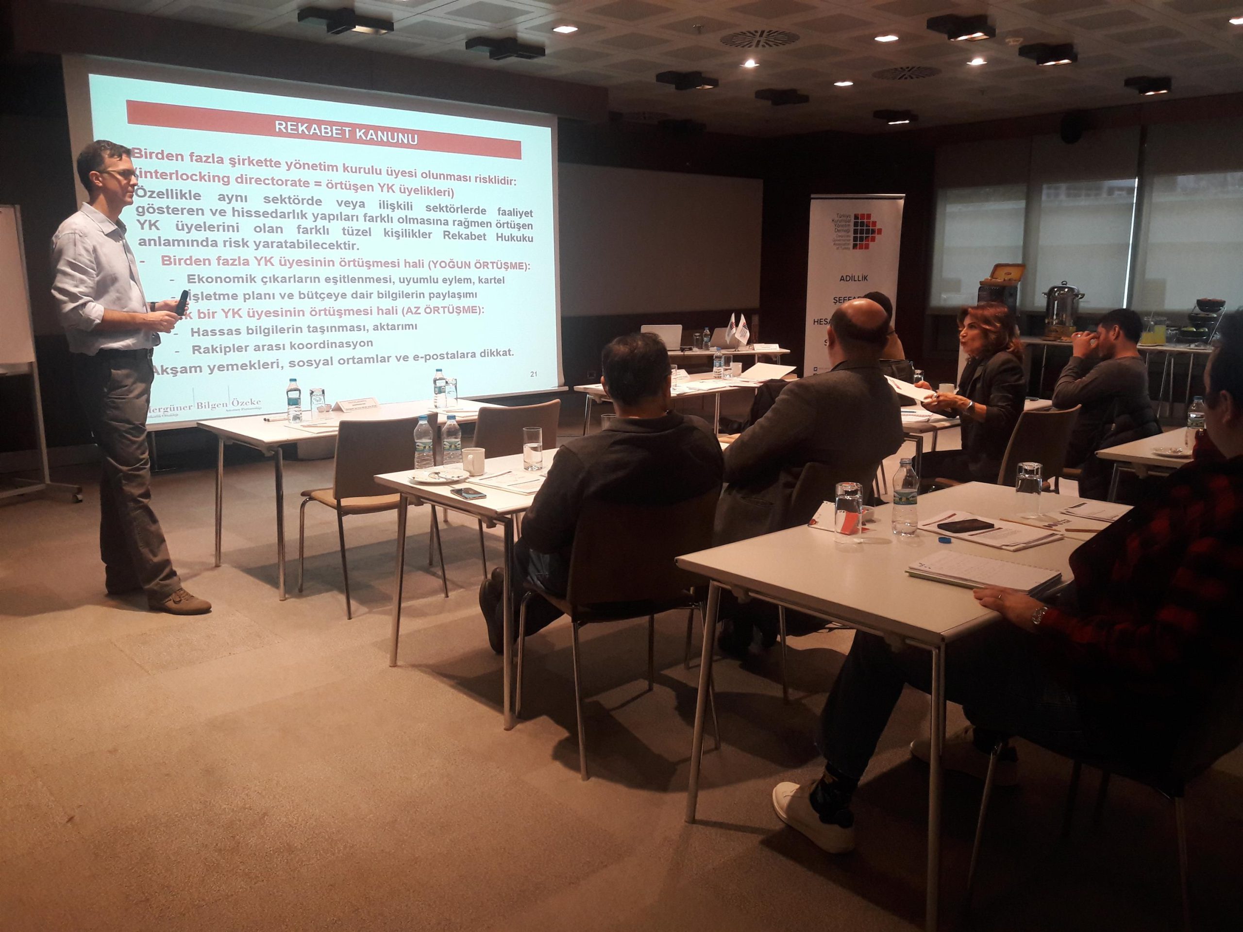 TKYD’nin Yönetim Kurulu Üyeliği İhtisas Programı 8-9 Şubat 2019 tarihlerinde Point Otel’de düzenlendi. Programda; yönetim kurulunun yapısı ve yönetim kurulu üyelerinin konumu, yönetim kurulu seçim kriteleri-oryantasyon ve yönetim kurulu üyelerine sağlanan ücret ve yan haklar, doğru yönetim modelleri ve takım olma bilinci, yönetim kurulunda şirket stratejisinin oluşturulması ve benimsenmesi, yönetim kurulu üyelerinin hukuki görev ve sorumlulukları, risk yönetimi konuları kapsamlı olarak ele alındı.