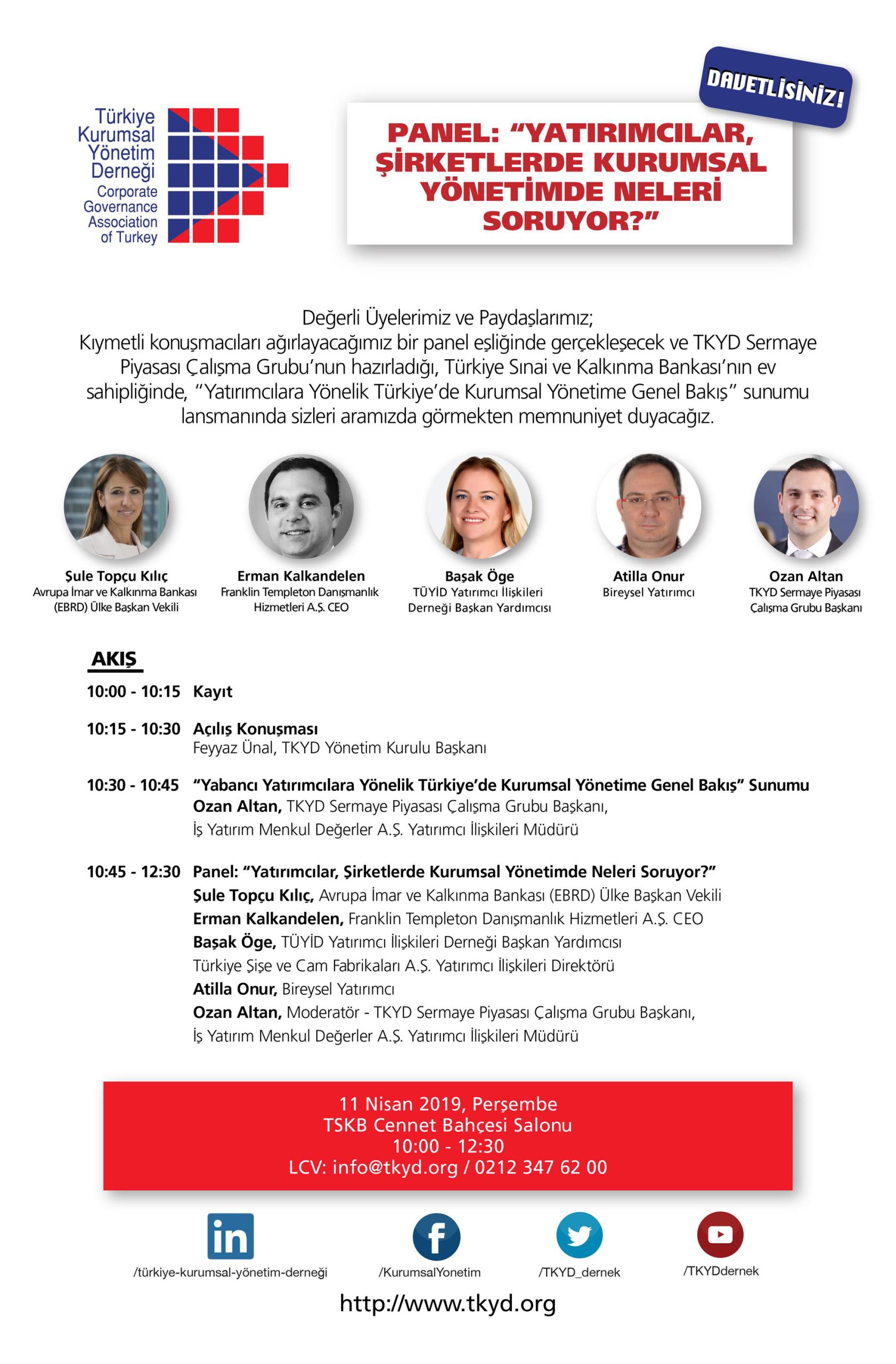 Panel: Yatırımcılar Kurumsal Yönetimde Neleri Soruyor? 11 Nisan 2019