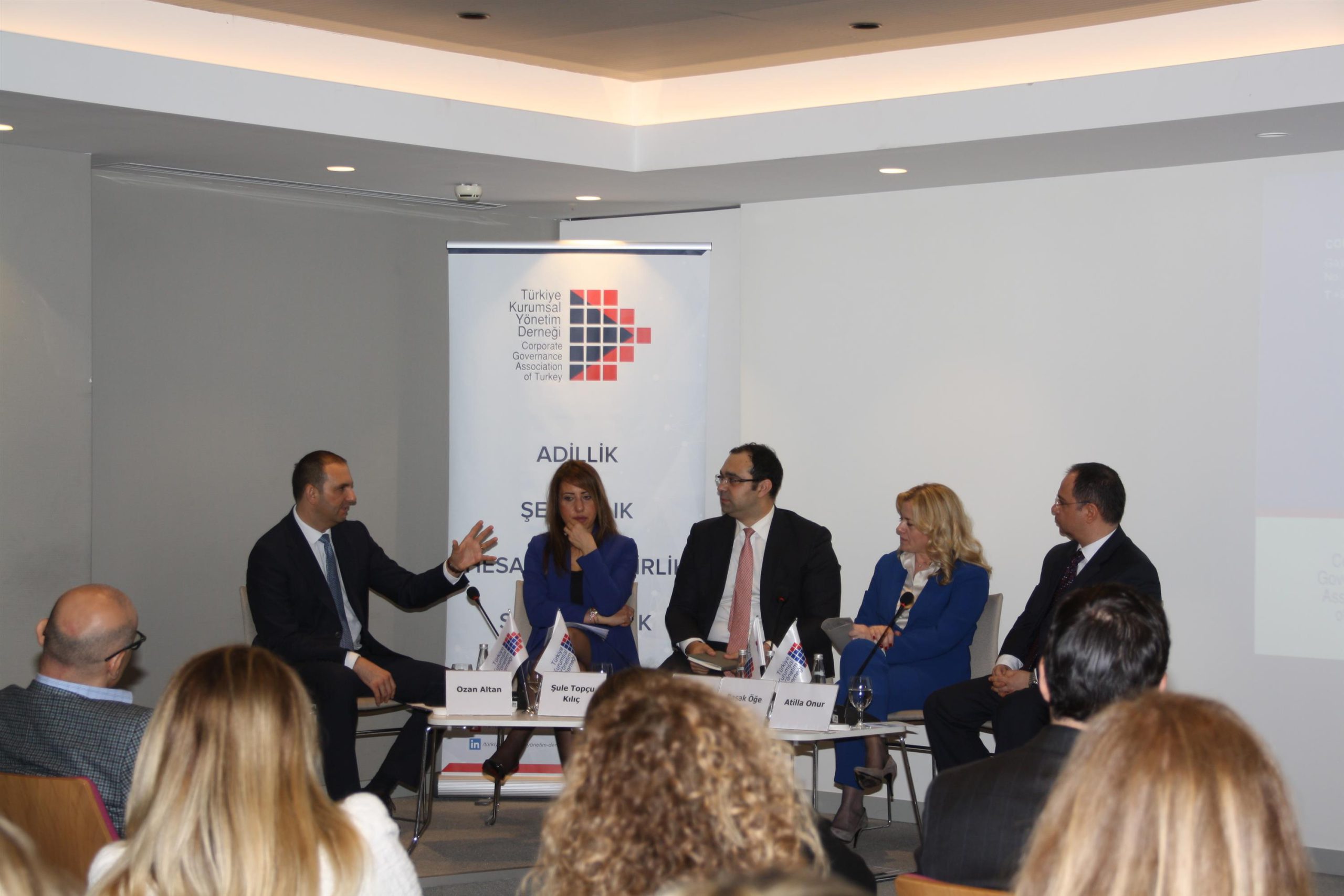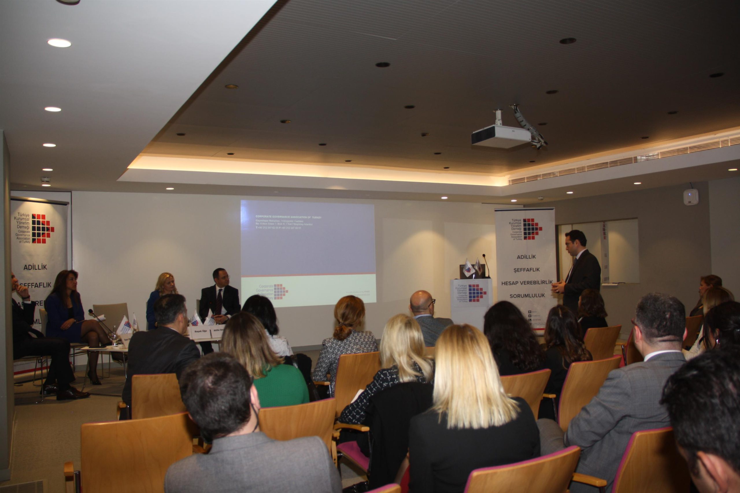 Sunumun ardından “Yatırımcılar, Şirketlerde Kurumsal Yönetimde Neleri Soruyor?” panelinde birbirinden değerli konuşmacılar TKYD Yönetim Kurulu Üyesi ve Sermaye Piyasası Çalışma Grubu Başkanı Ozan Altan moderasyonunda görüş ve tecrübelerini aktardılar. Panelin konuşmacıları; Avrupa İmar ve Kalkınma Bankası (EBRD) Başkan Vekili Şule Topçu Kılıç, Franklin Templeton Danışmanlık Hizmetleri A.Ş. CEO’su Erman Kalkandelen, Yatırımcı İlişkileri Derneği Başkan Yardımcısı ve Türkiye Şişe ve Cam Fabrikaları A.Ş. Yatırımcı İlişkileri Direktörü Başak Öge, Bireysel Yatırımcı Atilla Onur oldu.