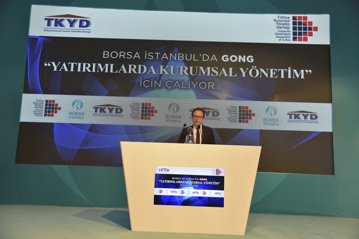Türkiye Kurumsal Yönetim Derneği Yönetim Kurulu Başkanı Feyyaz Ünal ve Türkiye Kurumsal Yatırımcı Yöneticileri Derneği Yönetim Kurulu Başkanı Selim Yazıcı, şirketlerdeki uluslararası kabul görmüş iyi uygulamaların artmasının desteklenmesine ilişkin “Yatırımlarda Kurumsal Yönetimin Desteklenmesi Protokolü”nü imzaladı. İmza töreninin ardından gong töreni gerçekleştirildi.