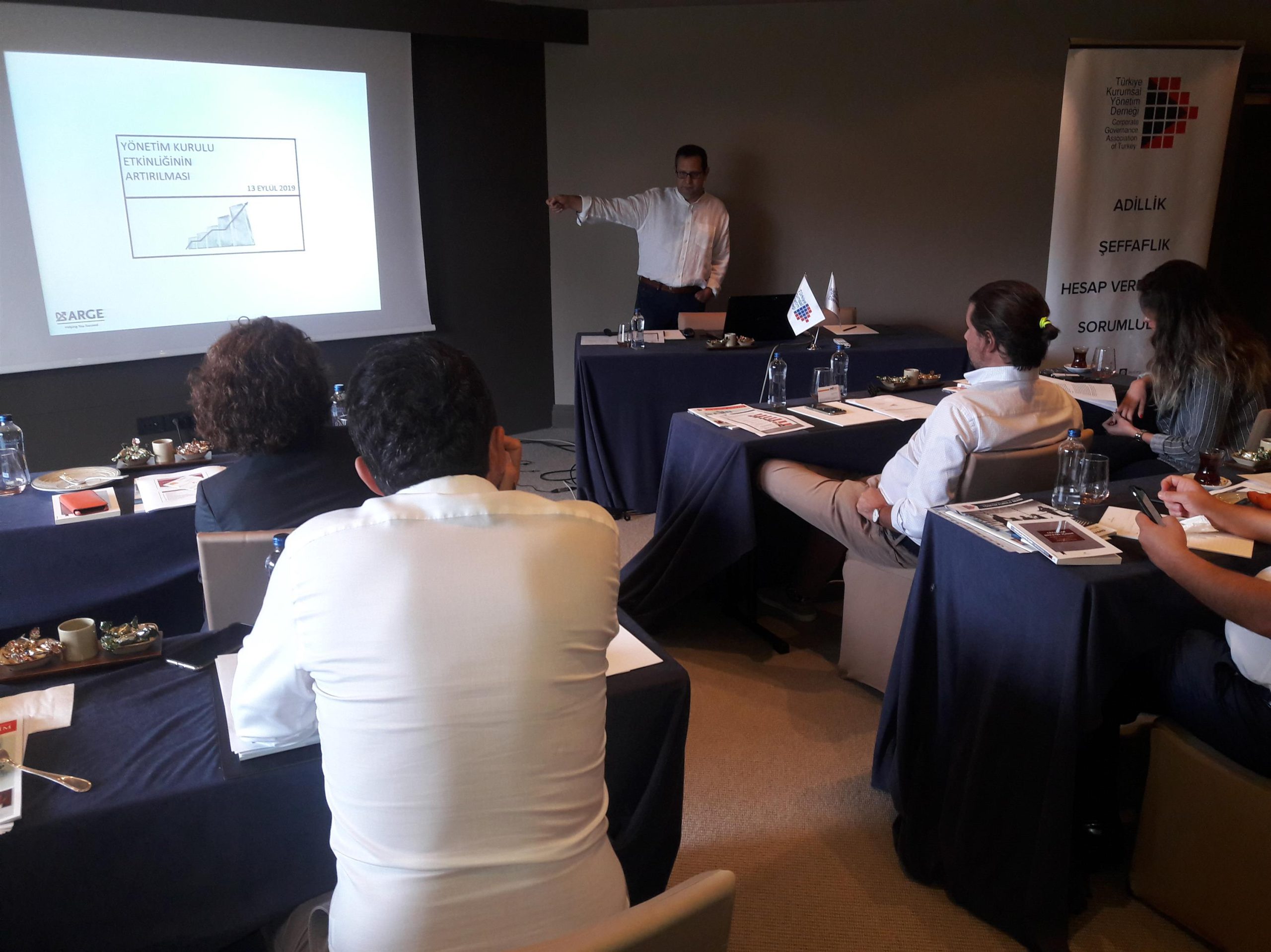 Hissedarlara Özel Yönetim Kurulu Üyeliği İhtisas Programı 13-14 Eylül 2019 tarihlerinde Intercontinental Otel’de düzenlendi. Programda; ana hissedar persfpektifiyle yönetim kurulunun oluşumu, yönetim kurulu oluşturma ve üye seçimi, şirket birleşme ve satınalmalarında yönetim kurulunun rolü, doğru yönetim modelleri ve takım olma bilinci, yönetim kurulu performans ölçümü ve komiteler, yönetim kurulu üyelerinin hukuki görev ve sorumlulukları, yönetim kurulunda gelecek dönem stratejisi ve yönetim hedefleri konuları kapsamlı olarak ele alındı.
