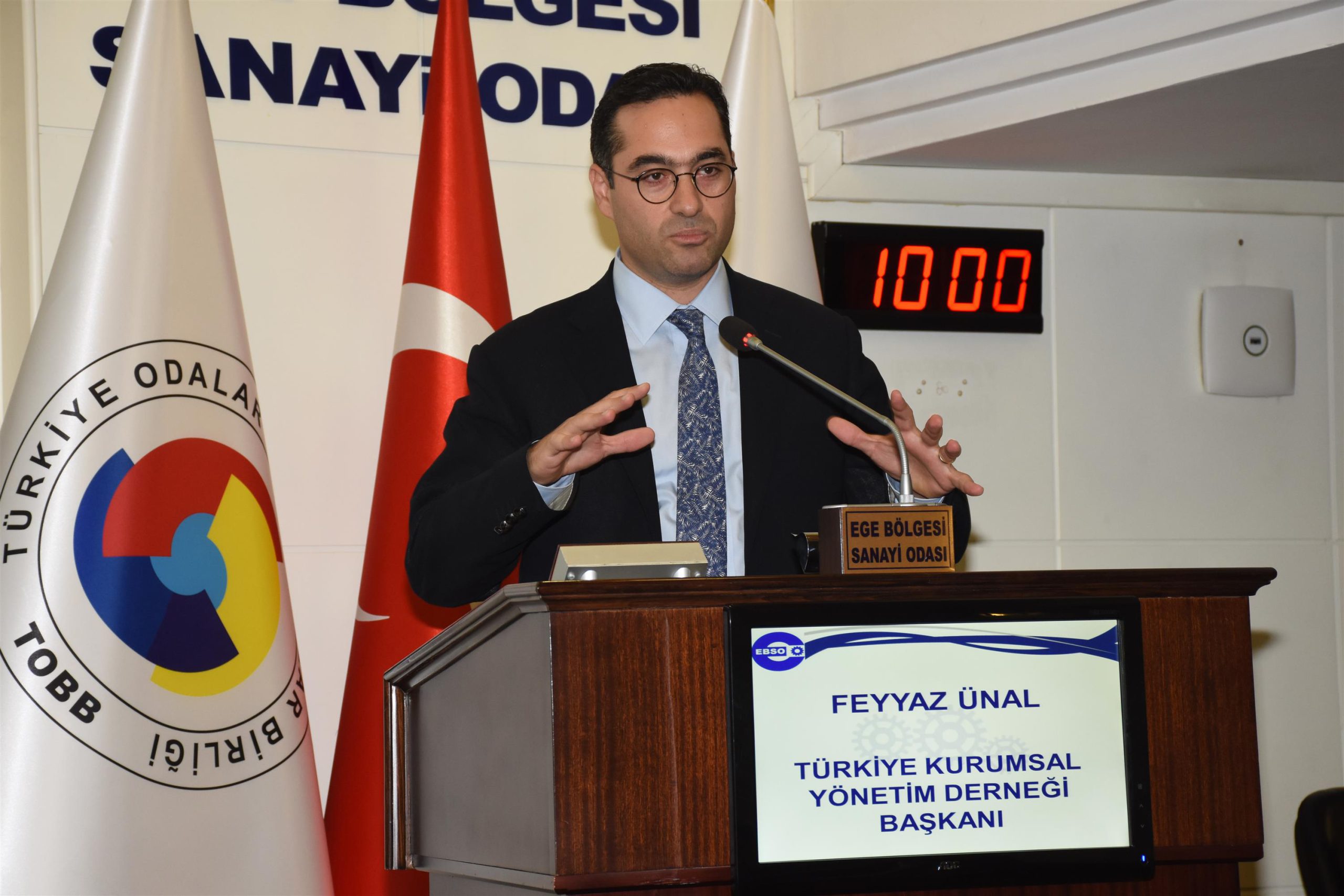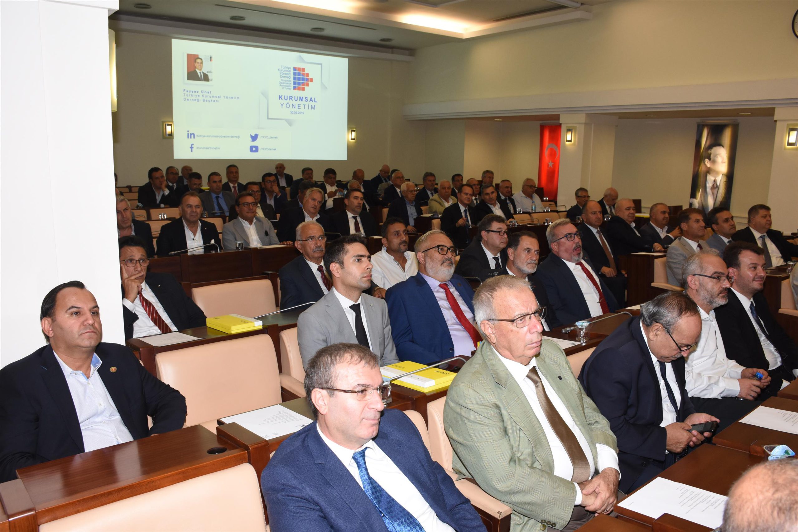 İzmir etkinliklerimizin ilk gününde Ege Bölgesi Sanayi Odası (EBSO)’nın 30 Eylül 2019 tarihinde düzenlenen Meclis Toplantısı’na konuk olduk. Toplantıda; Yönetim Kurulu Başkanımız Feyyaz Ünal “Kurumsal Yönetim Nedir? Neden Önemlidir?” konusunda bir sunum yapıp meclis üyeleri ile kurumsal yönetimi konuştu. Aynı gün etkinlik öncesi İzmir’in basın mensupları ile de bir araya gelme imkanı bulduk.