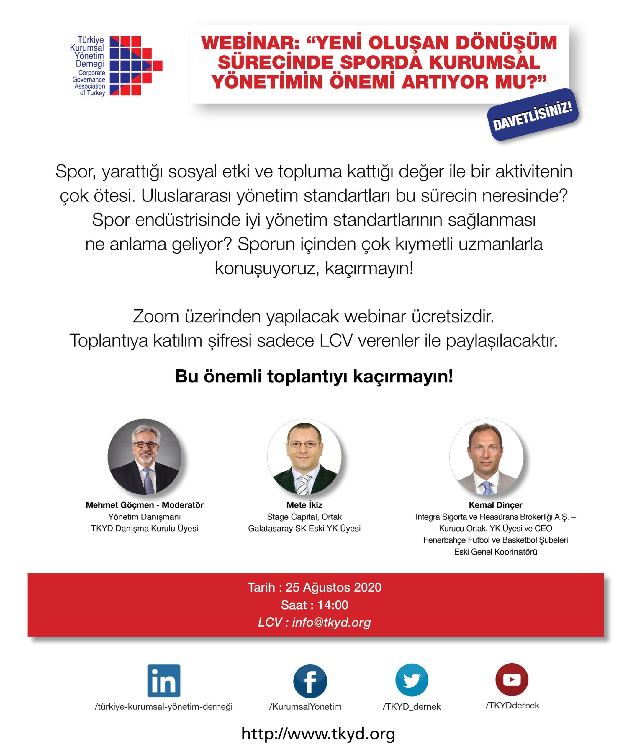 TKYD Webinar: Dönüşüm Sürecinde Sporda Kurumsal Yönetimin Önemi Artıyor mu? 25 Ağustos 2020