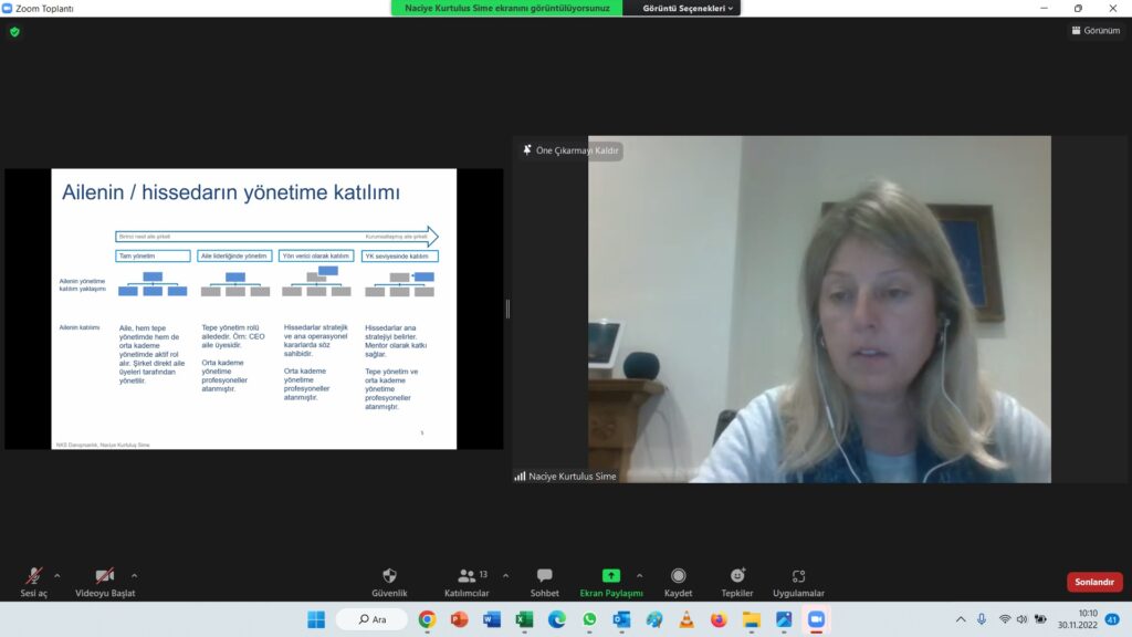 “Aile Şirketlerinde Hissedar ve Profesyonel İlişkisi” eğitim programımızı 30 Kasım 2022 tarihinde çevrim içi olarak düzenledik.