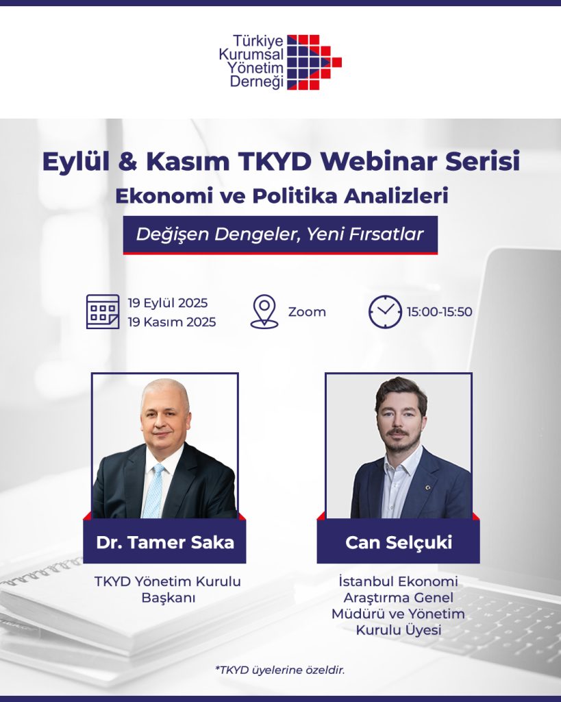 Türkiye Kurumsal Yönetim Derneği (TKYD) olarak sadece üyelerimize özel düzenlediğimiz “Ekonomi ve Politika Analizleri” Webinar Serisi, değişen dengeleri doğru anlamak ve iş dünyasını etkileyecek yeni fırsatları değerlendirmek amacıyla hayata geçirildi.