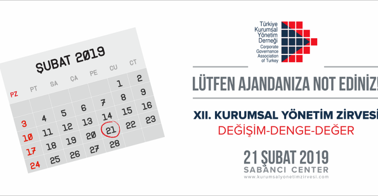 Lütfen Ajandanıza Not Ediniz! XII. Kurumsal Yönetim Zirvesi, 21 Şubat 2019