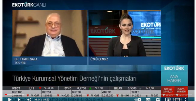 Türkiye Kurumsal Yönetim Derneği Yönetim Kurulu Başkanı Dr. Tamer Saka, Ekotürk’te yayınlanan ana haber bültenine konuk olarak; TKYD’nin faaliyetleri, Türkiye’de kurumsal yönetim anlayışı hakkında bilgi verdi.
