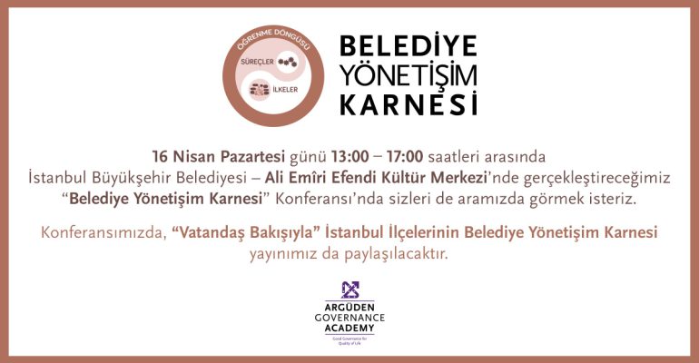 Faaliyetlerini Boğaziçi Üniversitesi Vakfı çatısı altında yürüten, kâr amacı gütmeyen Argüden Yönetişim Akademisi 16 Nisan 2018 tarihinde 13:00–17:00 saatleri arasında “Belediye Yönetişim Karnesi” Konferansı düzenleyecek. Konferansta, “Vatandaş Bakışıyla” İstanbul İlçelerinin Belediye Yönetişim Karnesi yayını paylaşılacaktır. Tarih : 16 Nisan 2018 Saat : 13:00–17:00 Yer : İstanbul Büyükşehir Belediyesi – Ali Emiri Efendi Kültür Merkezi Hırka-i Şerif Mahallesi, […]