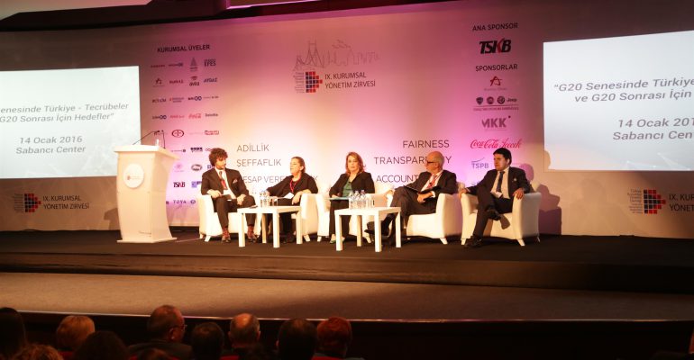 Türkiye Kurumsal Yönetim Derneği – TKYD, 9. Kurumsal Yönetim Zirvesi’ni 14 Ocak 2016 tarihinde Sabancı Center’da düzenledi. Zirvenin ana oturumunda G20 sürecini ele alırken, eş zamanlı oturumlarda OECD Kurumsal Yönetim İlkeleri’nde oluşan değişiklikler ve aile şirketlerindeki kurumsallaşma çalışmaları geniş bir konuşmacı katılımıyla tartışmaya açıldı. Merakla beklenen “Bağımsız Yönetim Kurulu Üyesi Ücret Araştırması” raporu da ilk […]