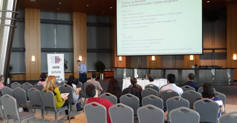 27 Haziran 2015 tarihinde Türkiye iş Bankası’nda gerçekleştirilen şirket özel eğitimi “Etkin Yönetim Kurulları Eğitim Programı” içeriğiyle M. Sait Gözüm tarafından verildi.