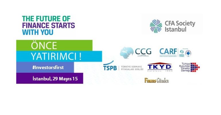 CFA İstanbul tarafından Boğaziçi Üniversitesi Kurumsal Yönetim ve Finansal Düzenleme Uygulama ve Araştırma Merkezi (CCG) ve Finansal Uygulama ve Araştırma Merkezi (CARF) işbirliğinde “Önce Yatırımcı!” konferansı düzenleyecektir. TKYD olarak destek verdiğimiz program, 29 Mayıs 2015 tarihinde 14:00 – 17:00 saatleri arasında Boğaziçi Üniversitesi Albert Long Hall’da gerçekleşecektir.