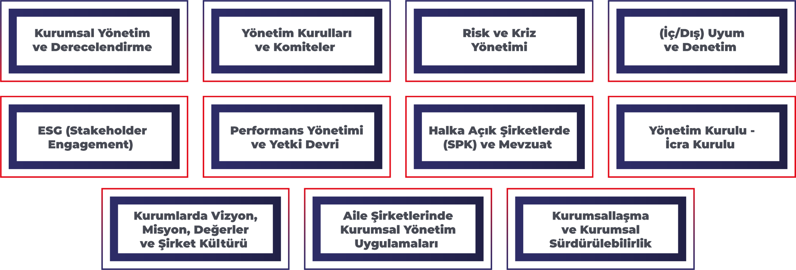 TKYD Uluslararası Kurumsal Yönetim Enstitüsü olarak 11 farklı kategoride 50+ farklı eğitim programı sunuyoruz.