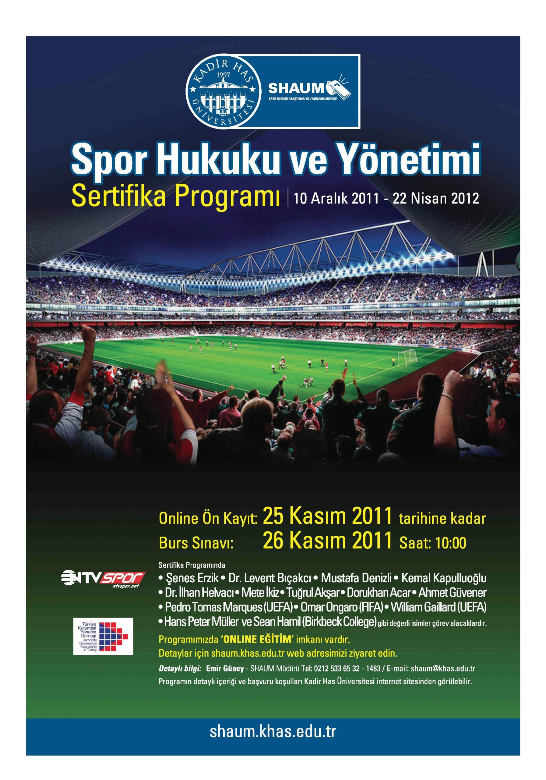 Kadir Has Üniversitesi iş birliğinde Spor Hukuku ve Yönetimi Sertifika Programı yürütülmekte, programa içerik ve konuşmacı desteği sağlanmaktadır.