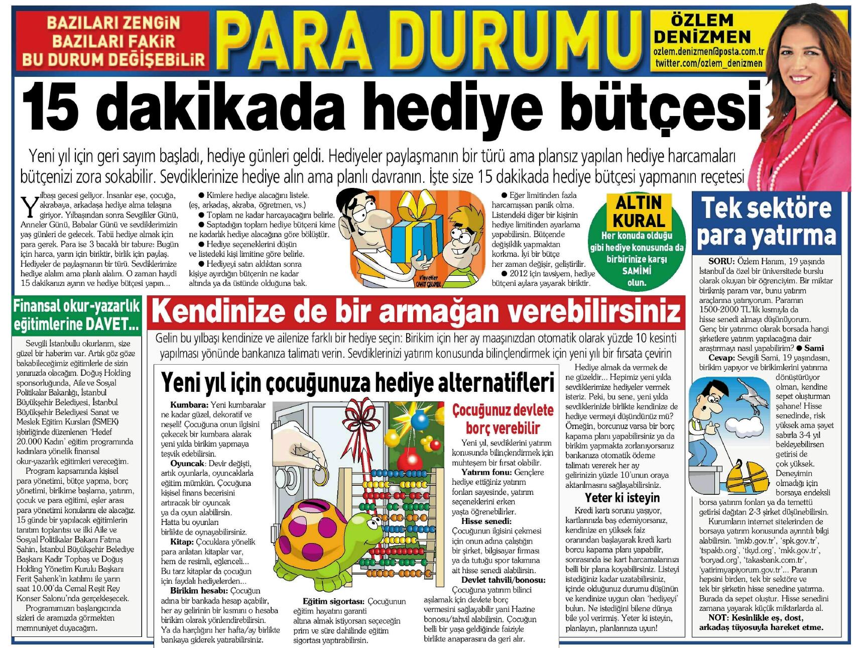 Posta Gazetesi Para Durumu, Özlem Denizmen, 15 Aralık 2011