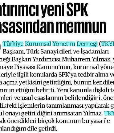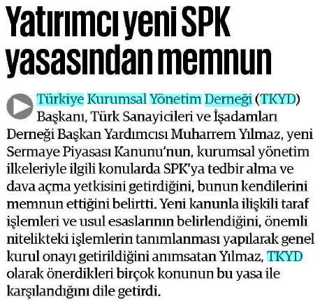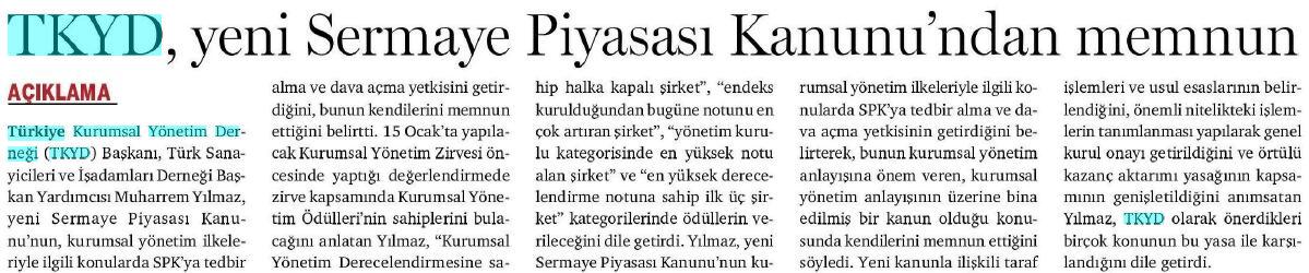 TKYD Yeni Sermaye Piyasası Kanunu’ndan Memnun | Dünya, 14 Ocak 2013