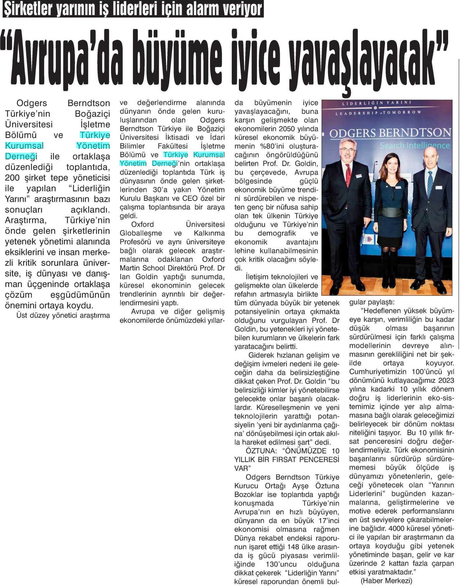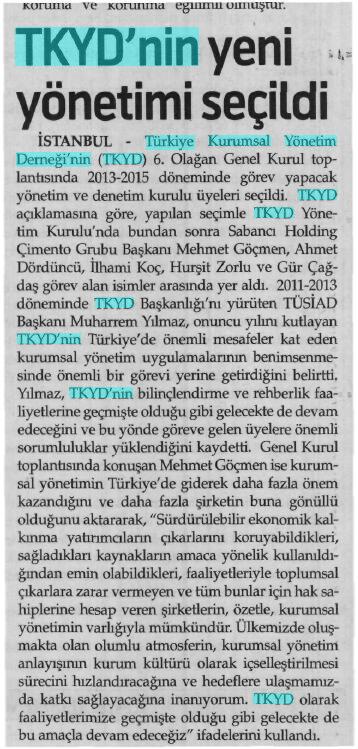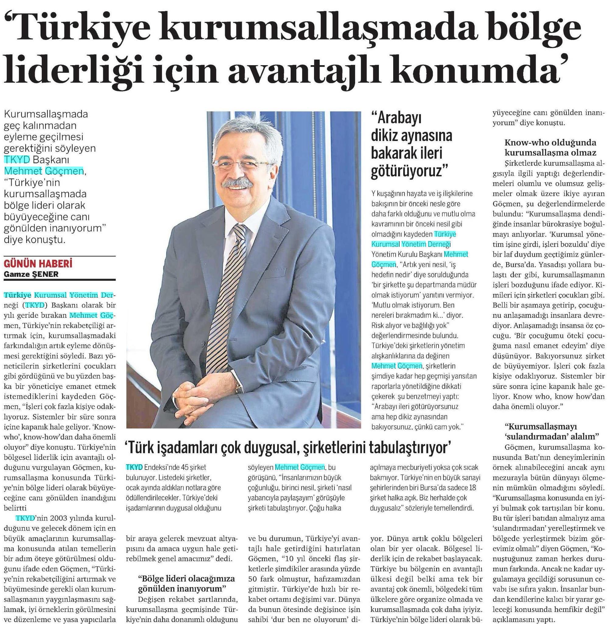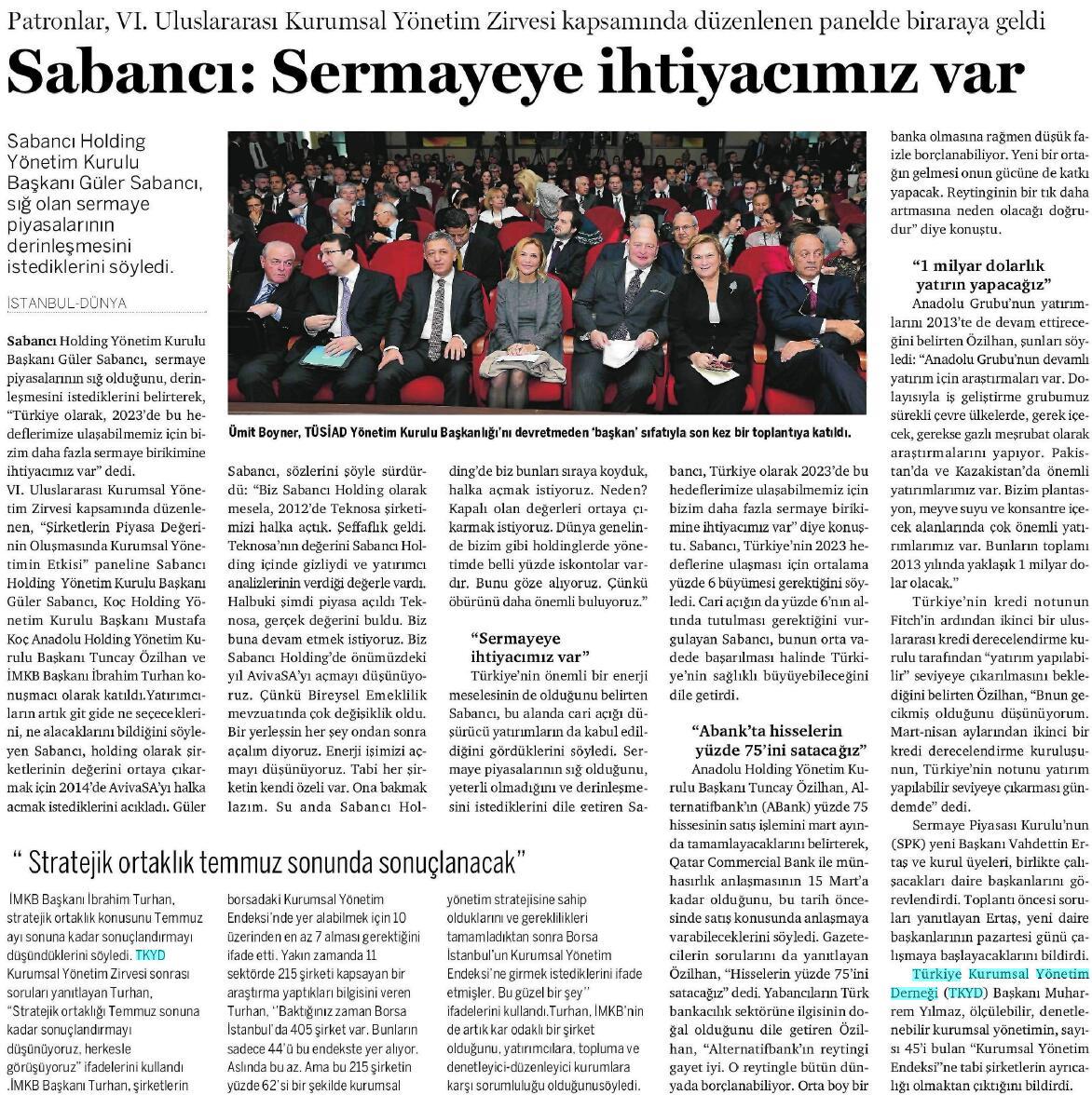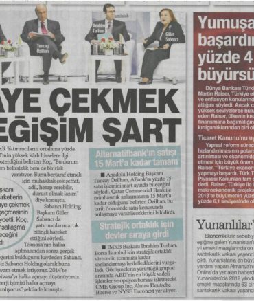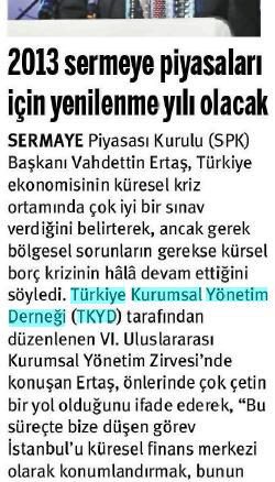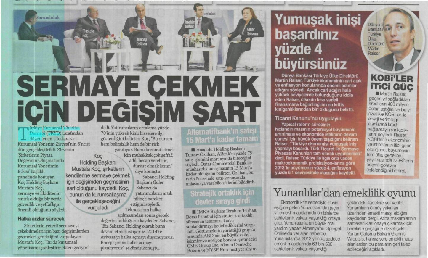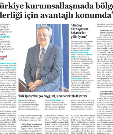 “Türkiye Kurumsallaşmada Bölge Liderliği İçin Avantajlı Konumda” Dünya, 20 Aralık 2013