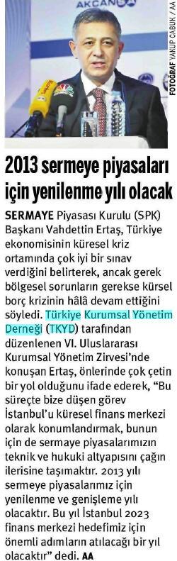 2013 Sermaye Piyasaları İçin Yenilenme Yılı Olacak | Taraf, 16 Ocak 2013