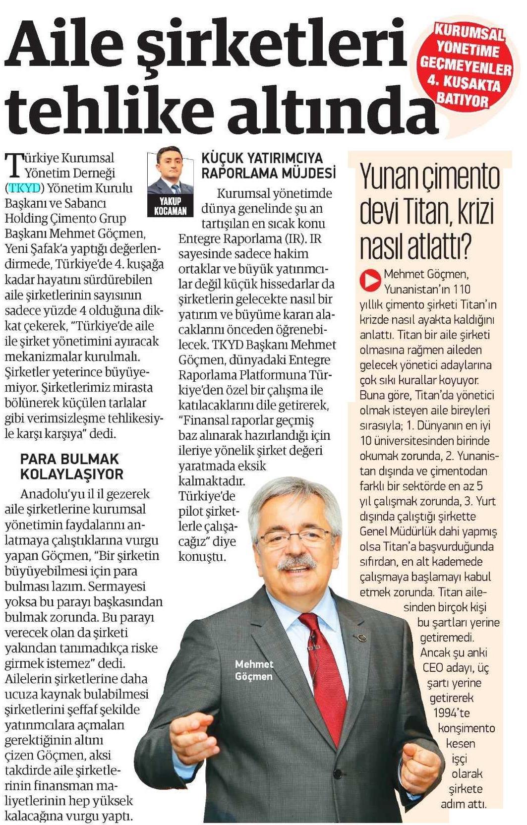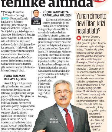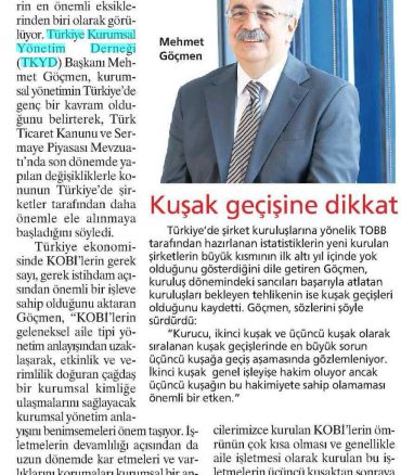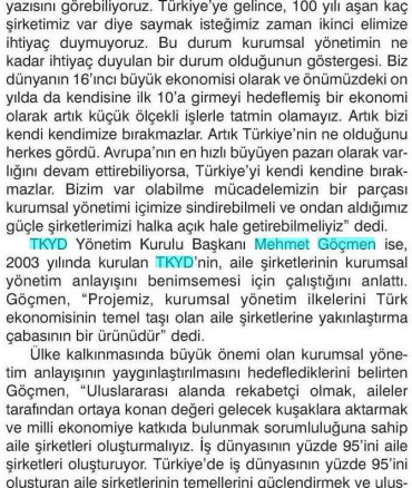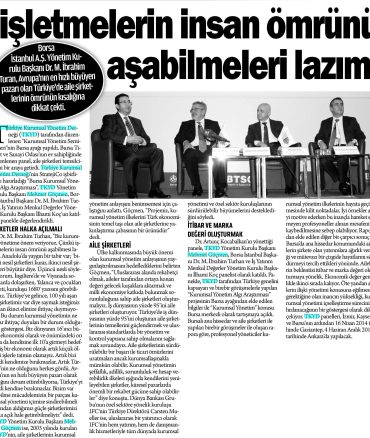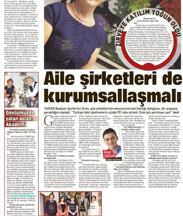 “Aile Şirketleri Kurumsal Olmalı” Yeni Asır, 28 Mayıs 2013