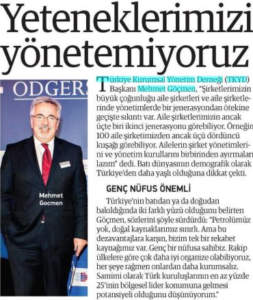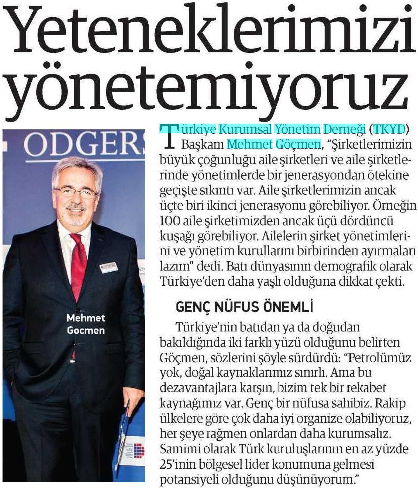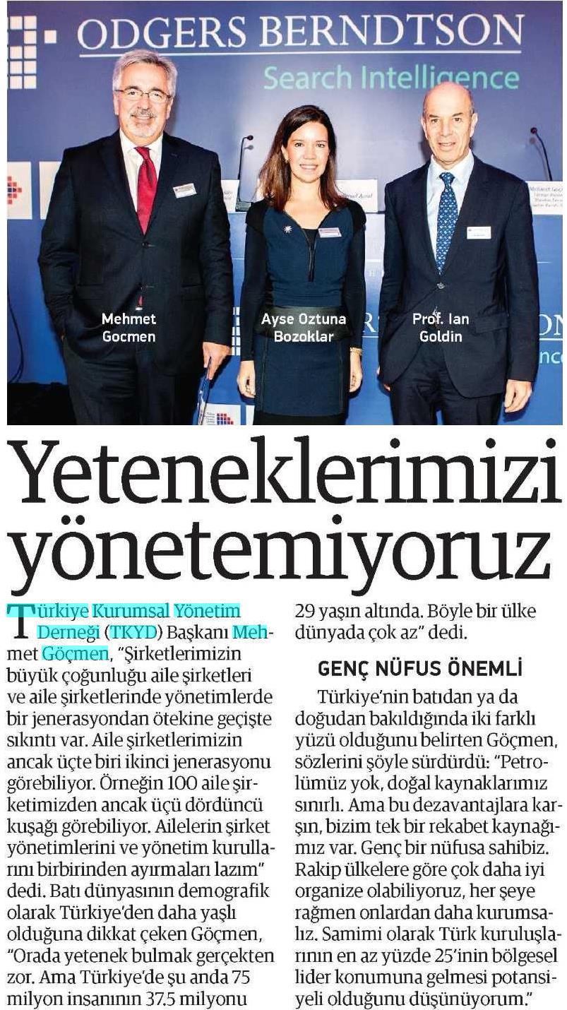Yeteneklerimizi Yönetemiyoruz Yeni Şafak İzmir, 16 Aralık 2013