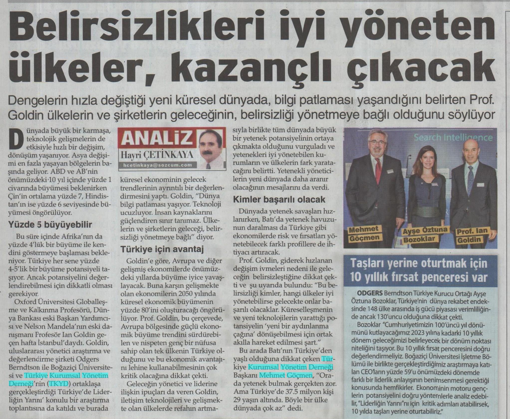 Belirsizlikleri İyi Yöneten Ülkeler Kazançlı Çıkacak Sözcü, 16 Aralık 2013