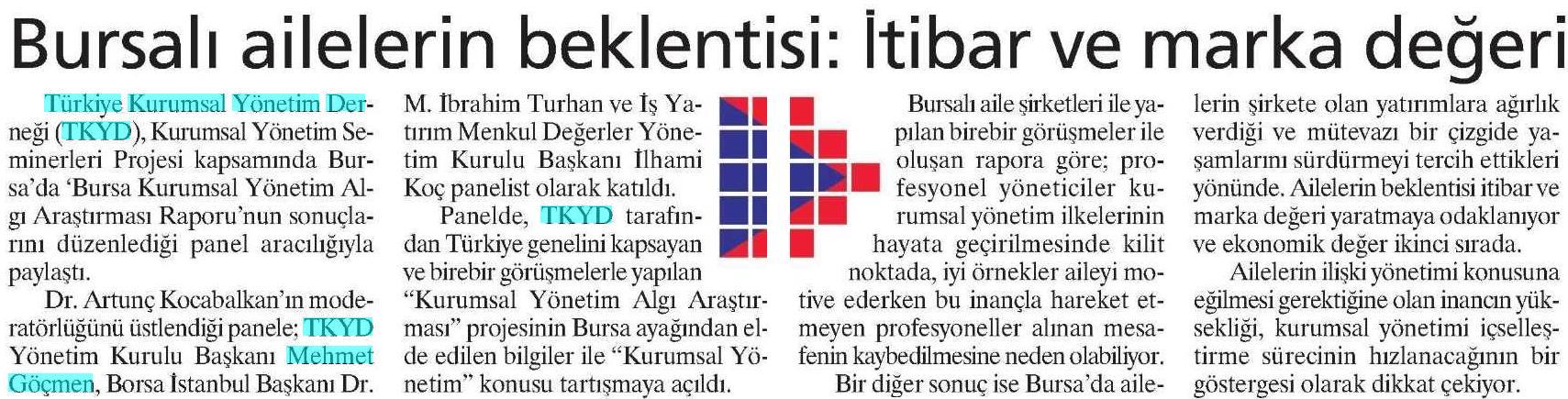 Bursalı Ailelerin Beklentisi: İtibar ve Marka Değeri Milliyet, 24 Aralık 2013