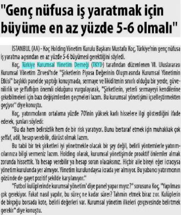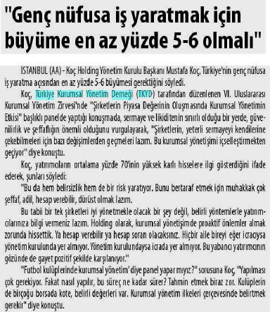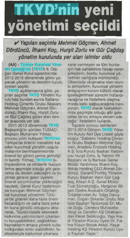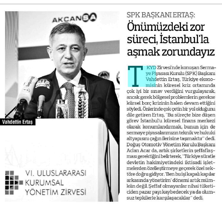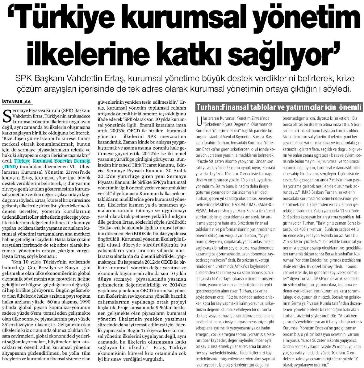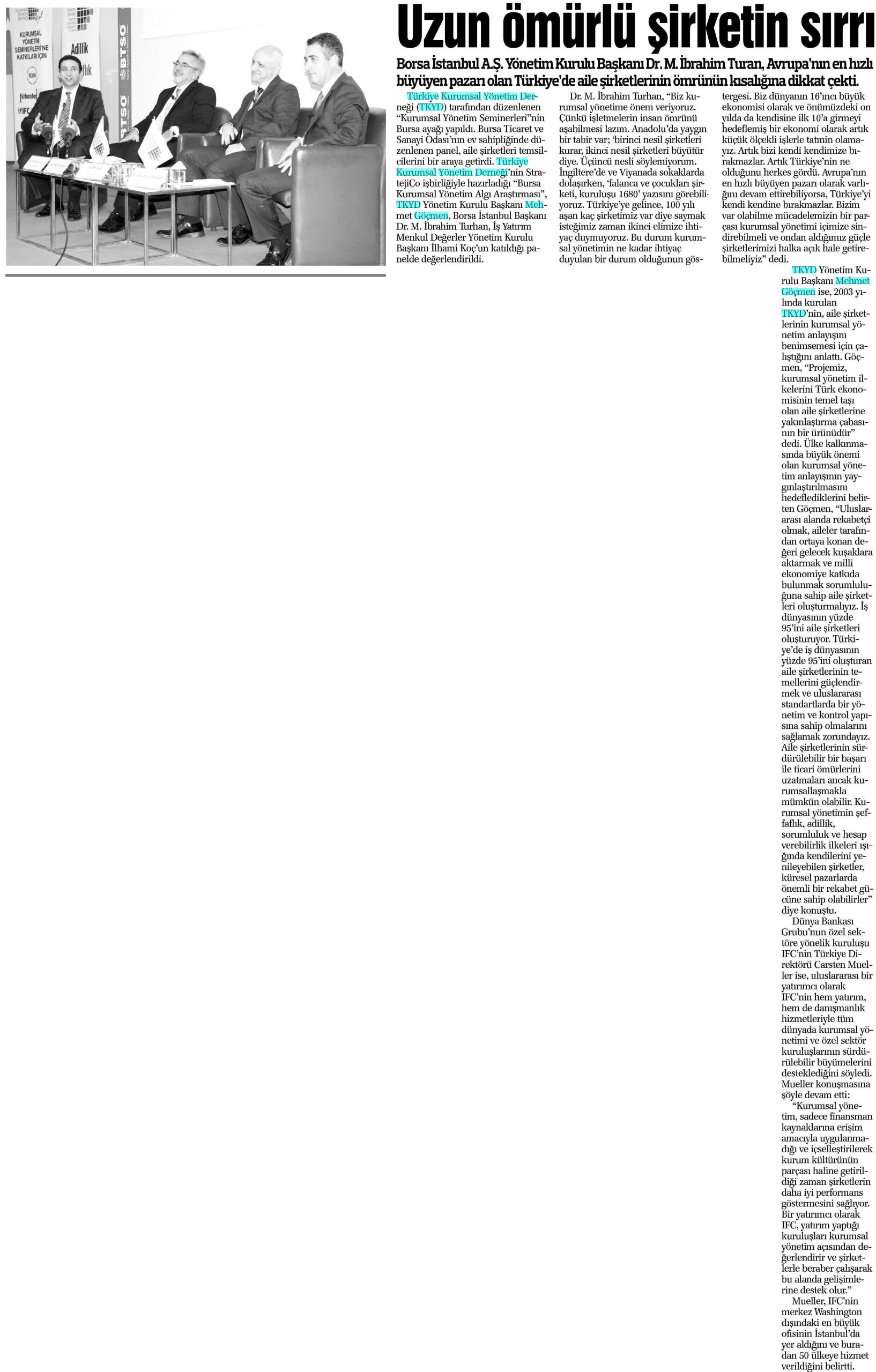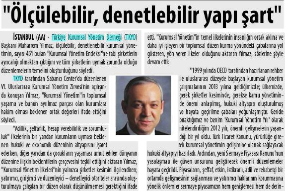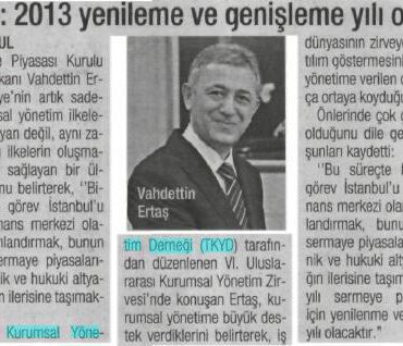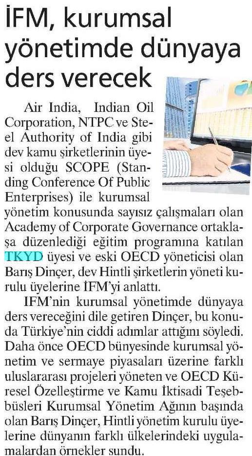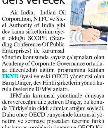 IFM, Kurumsal Yönetimde Dünyaya Ders Verecek Milliyet, 30 Eylül 2013