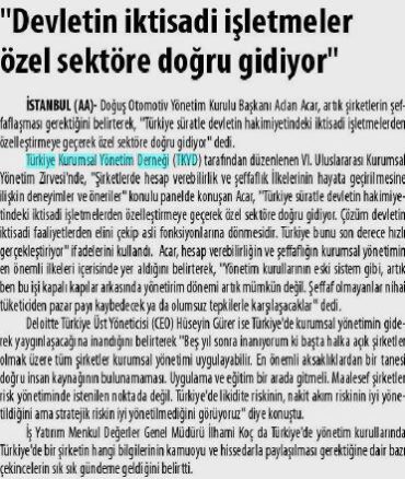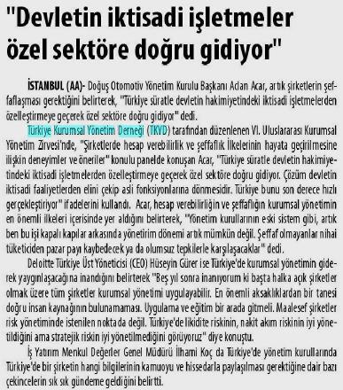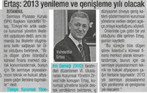 “Türkiye, Kurumsal Yönetim İlkelerine Katkı Sağlıyor” Hürses, 16 Ocak 2013