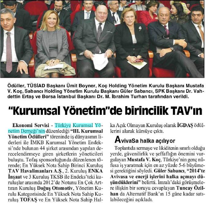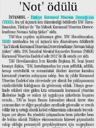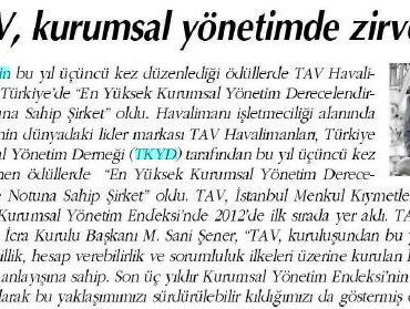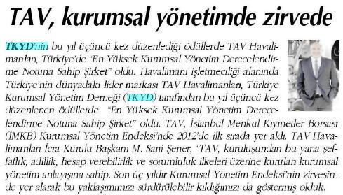 TAV, Kurumsal Yönetimde Zirvede Ortadoğu, 16 Ocak 2013