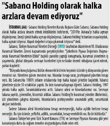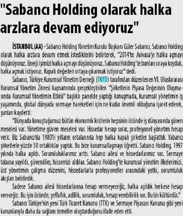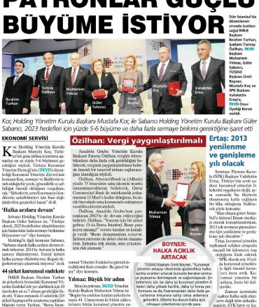 “Sabancı Holding Olarak Halka Arzlara Devam Ediyoruz” İzmir Ticaret, 16 Ocak 2013