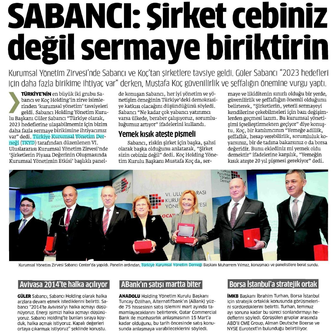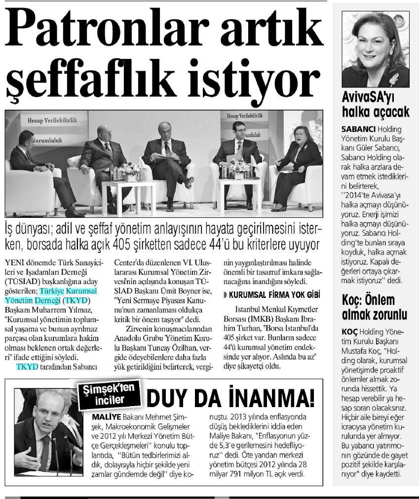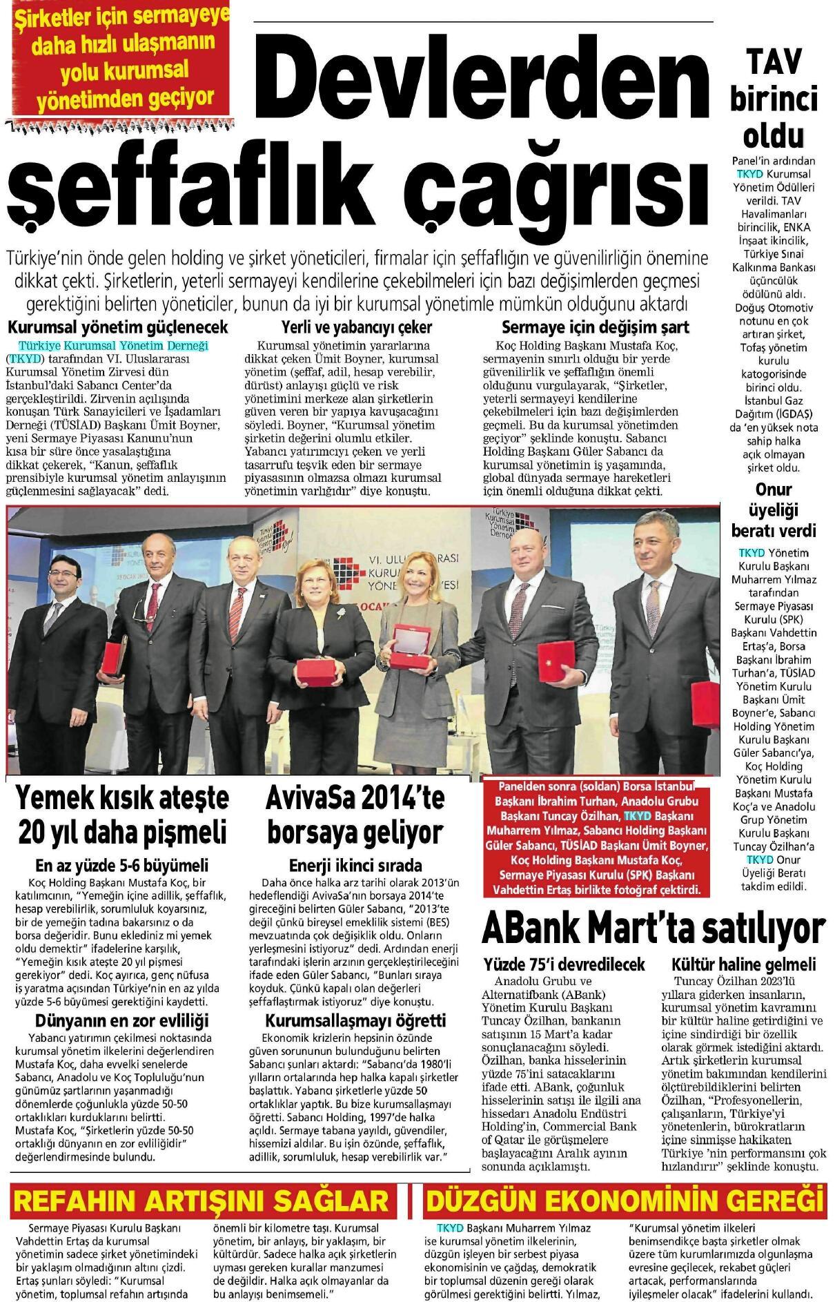 Kurumsal Yönetimi Birlikte Geliştirecekler Sabah, 22 Aralık 2013
