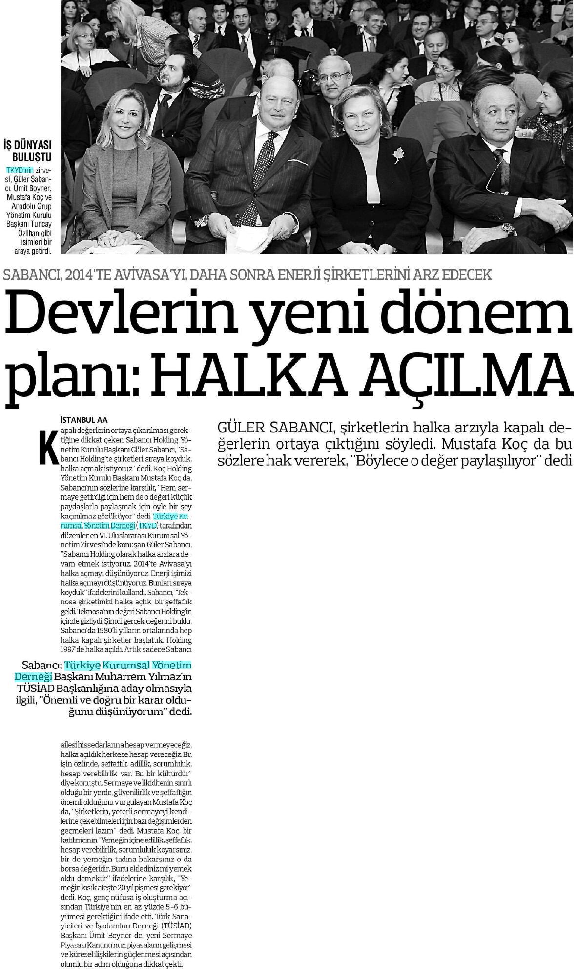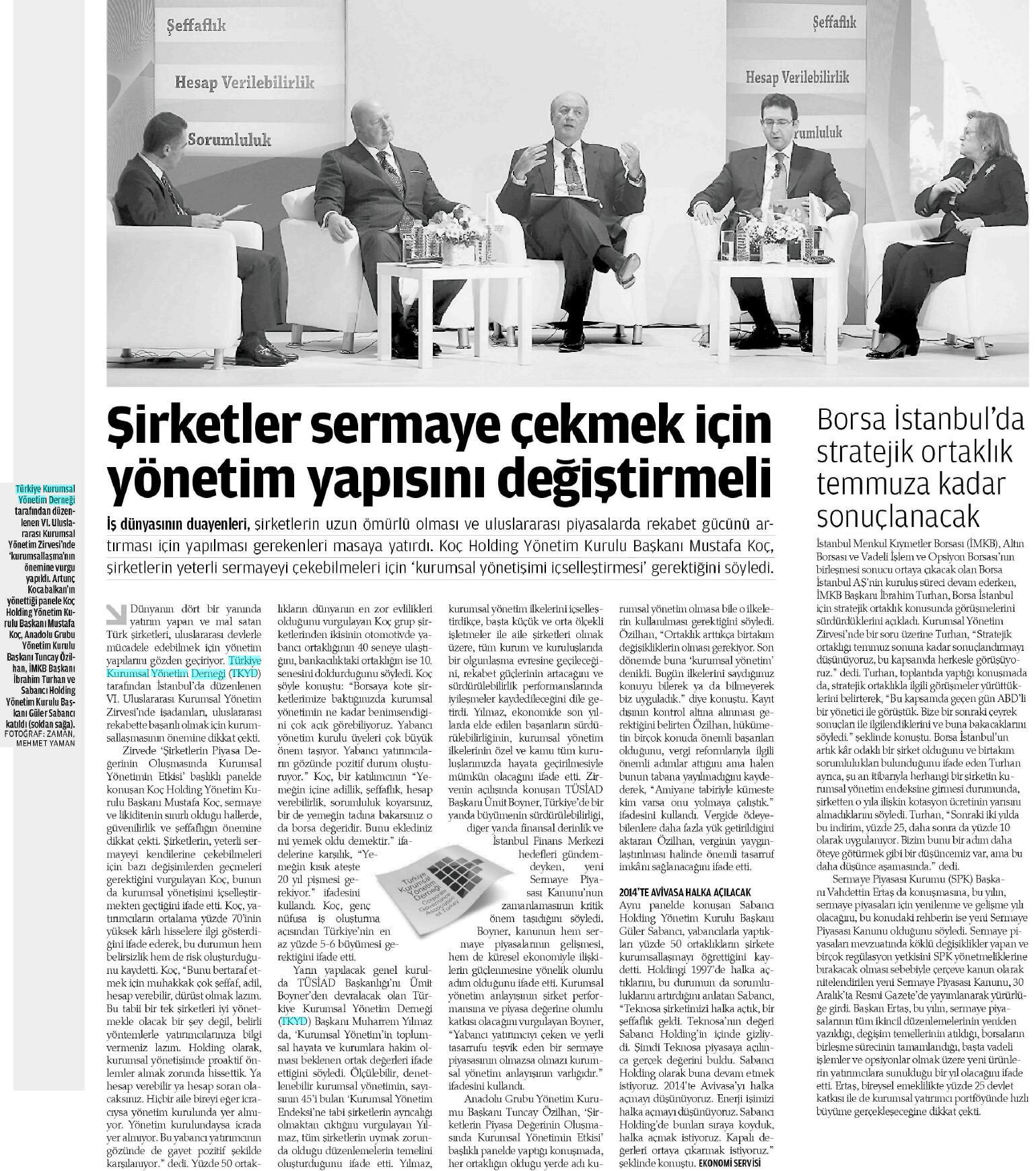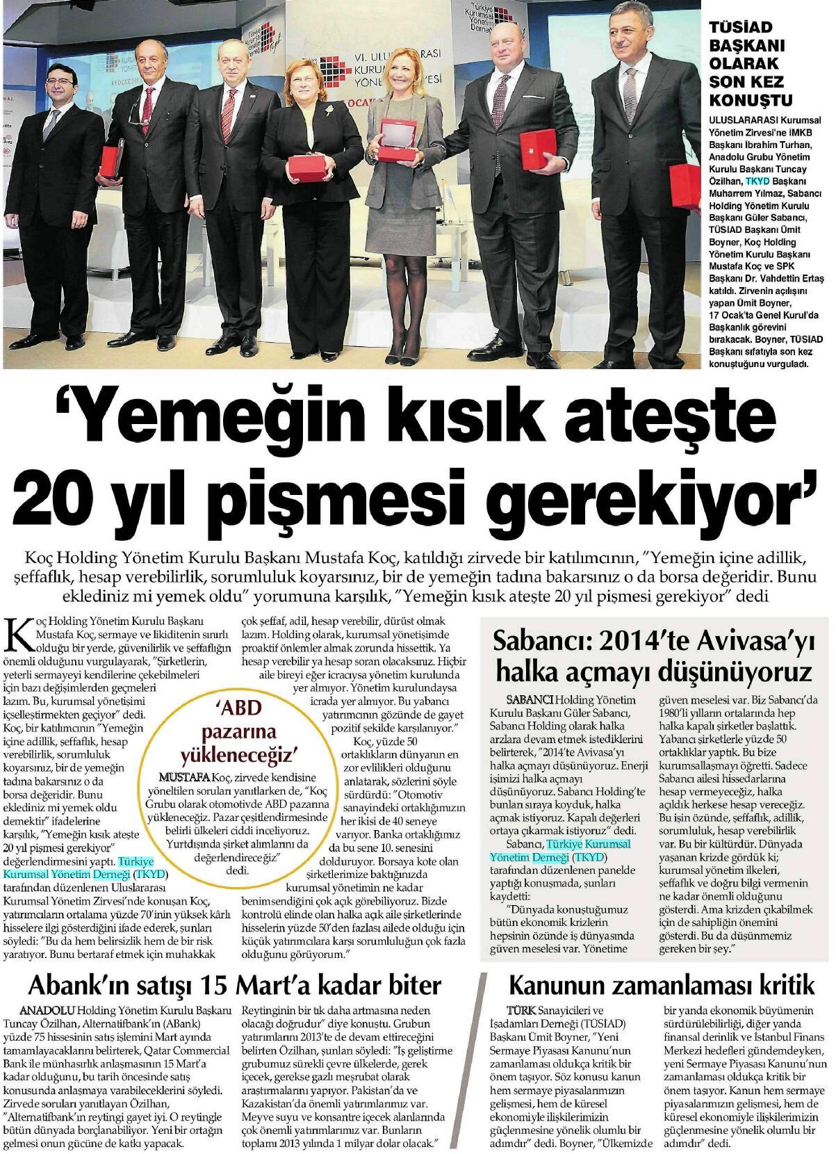 Kurumsal Yönetimi Birlikte Geliştirecekler Sabah, 22 Aralık 2013