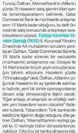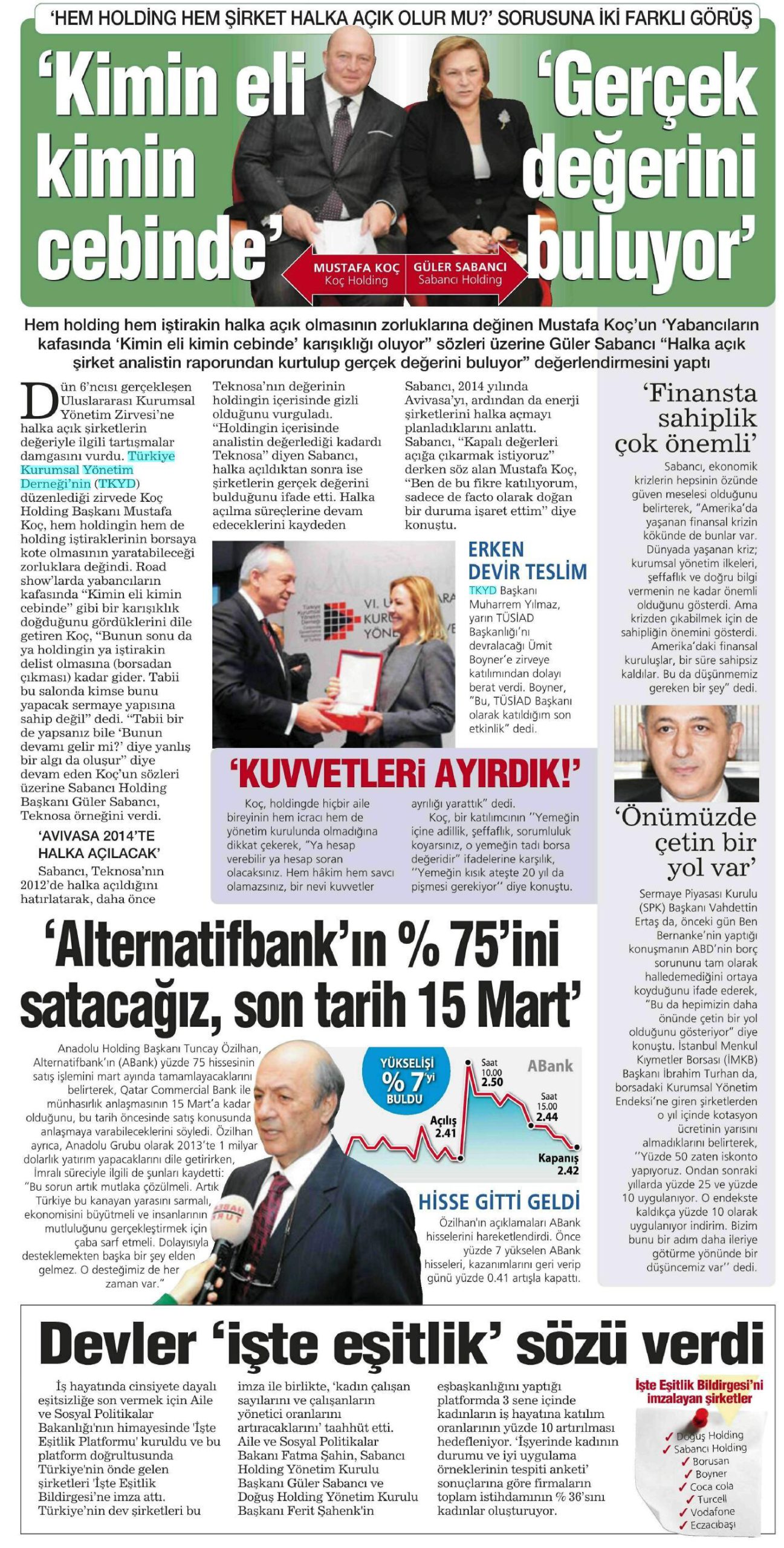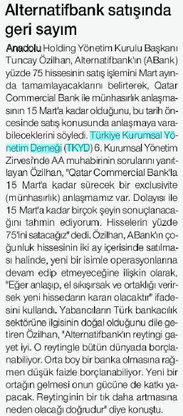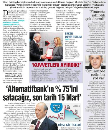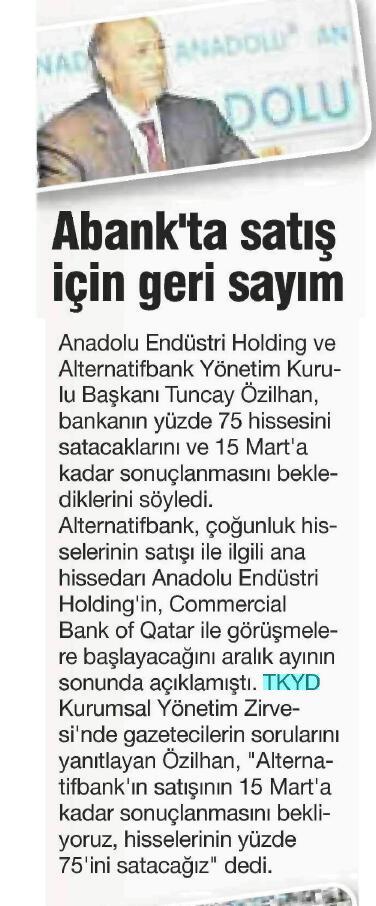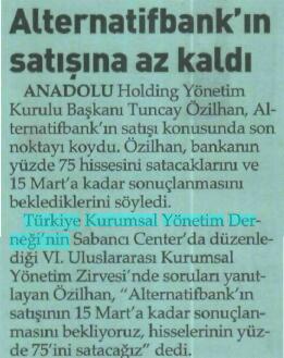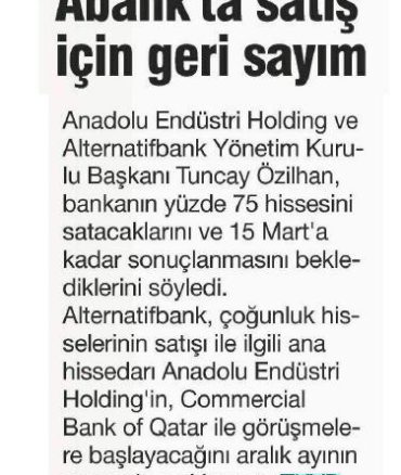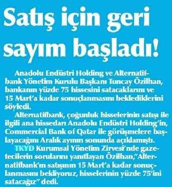 Alternatif Bank’ın Satışına Az Kaldı | Sözcü, 16 Ocak 2013