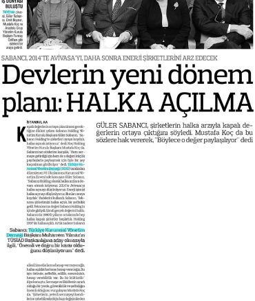 Devlerin Yeni Dönem Planı: Halka Açılma Türkiye, 16 Ocak 2013