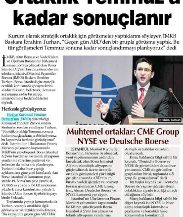 Borsa İstanbul’a Ortak Aranıyor | İzmir Yenigün, 16 Ocak 2013