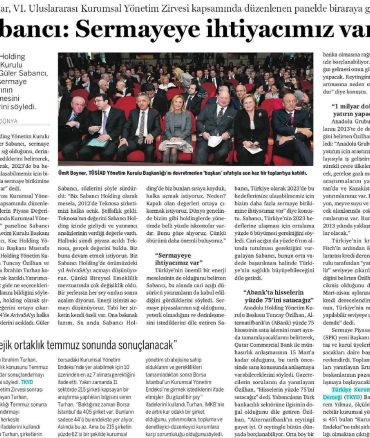 Sabancı: Sermayeye İhtiyacımız Var Dünya, 16 Ocak 2013