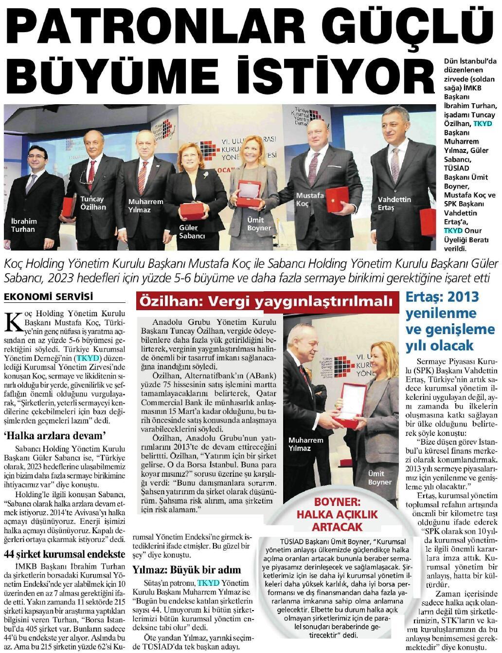 Patronlar Güçlü Büyüme İstiyor Milliyet, 16 Ocak 2013
