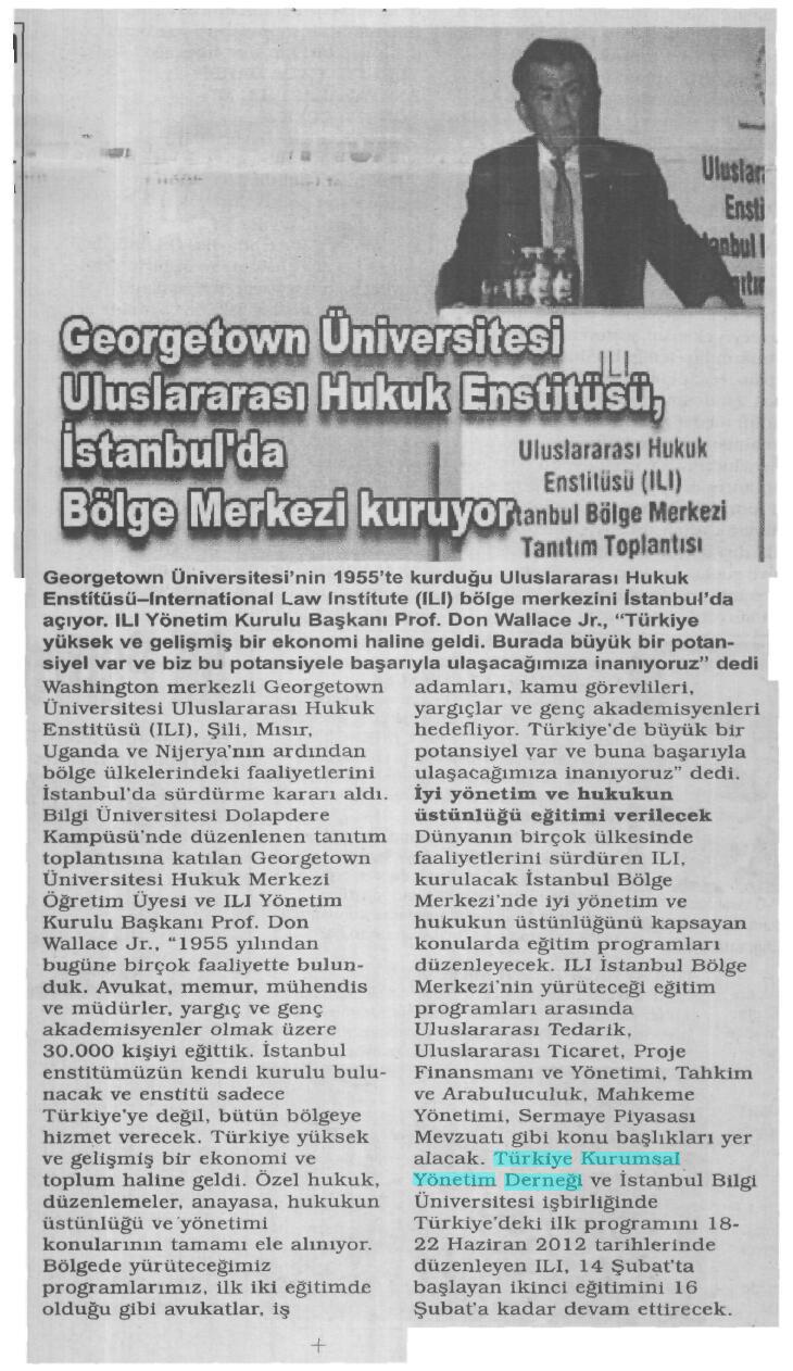 Gegorgetown Üniversitesi Uluslararası Hukuk Enstitüsü İstanbul’da Bölge Merkezi Kuruyor Samsun Denge, 18 Şubat 2013