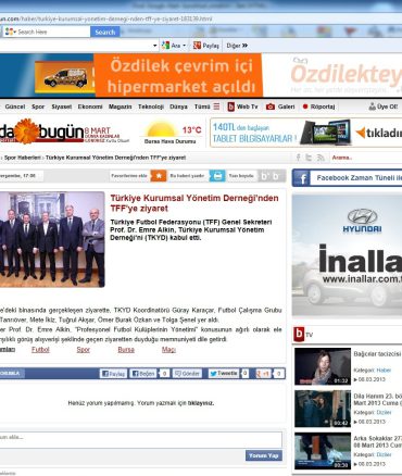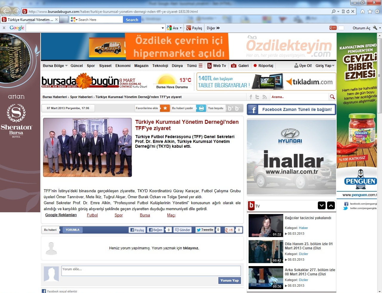 Türkiye Kurumsal Yönetim Derneği’nden TFF’ye Ziyaret Bursada Bugün, 08 Mart 2013