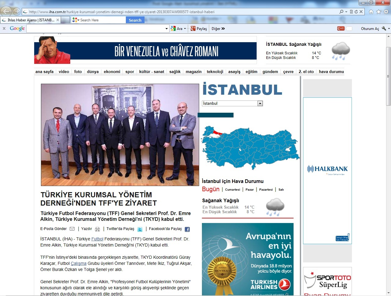 Türkiye Kurumsal Yönetim Derneği’nden TFF’ye Ziyaret İhlas Haber Ajansı, 08 Mart 2013