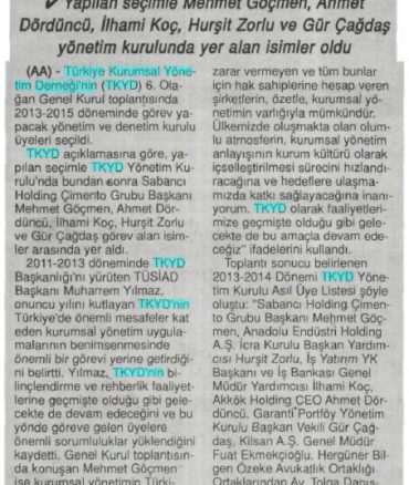 Türkiye Kurumsal Yönetim Derneği Capital, Ekim 2013