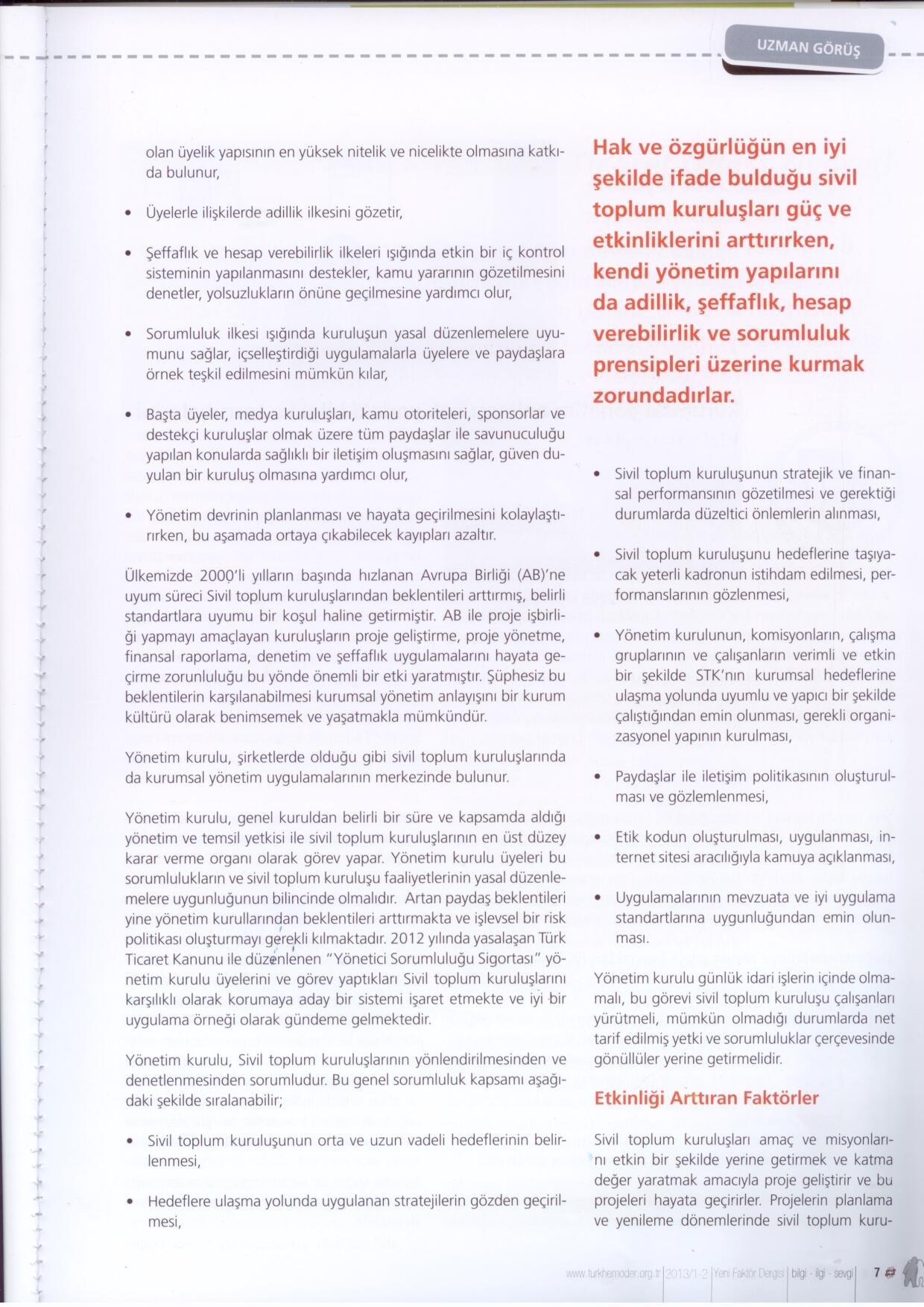 Sivil Toplum Kuruluşlarında Etkinlik ve Kurumsal Yönetimin Rolü Yeni Faktör Dergisi, Nisan 2013