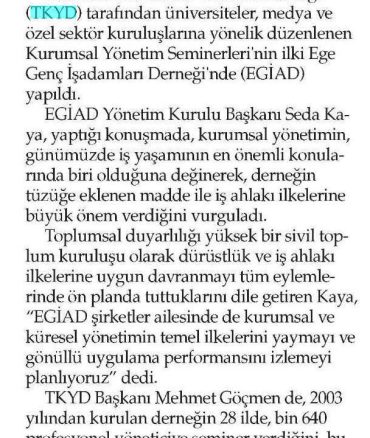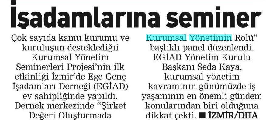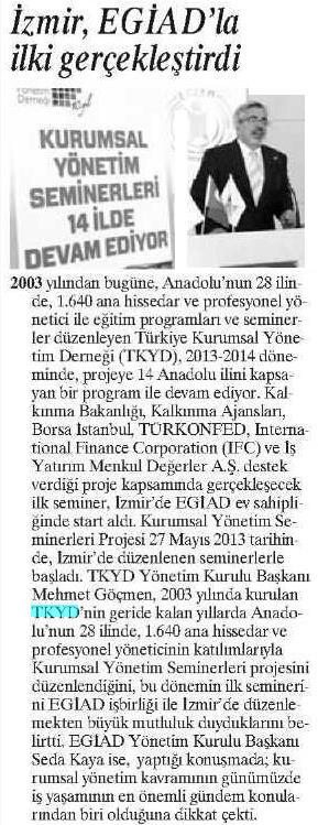 İzmir EGİAD’la İlki Gerçekleştirdi Ege Telgraf, 29 Mayıs 2013